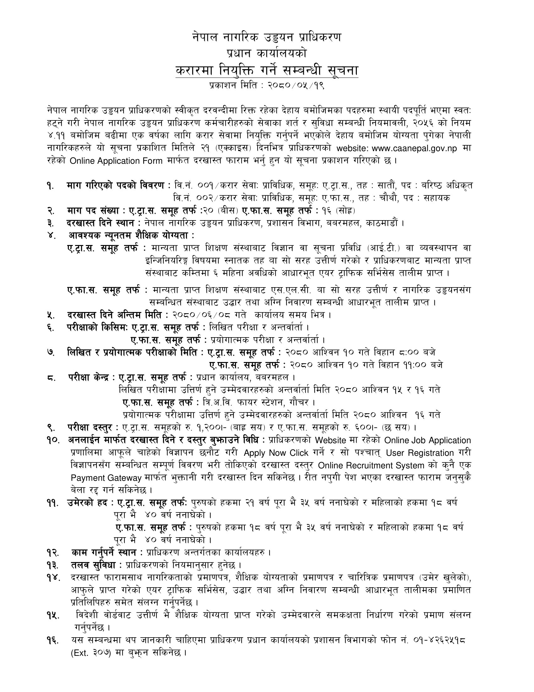 करारमा नियुक्ति गर्ने सम्बन्धि सूचना