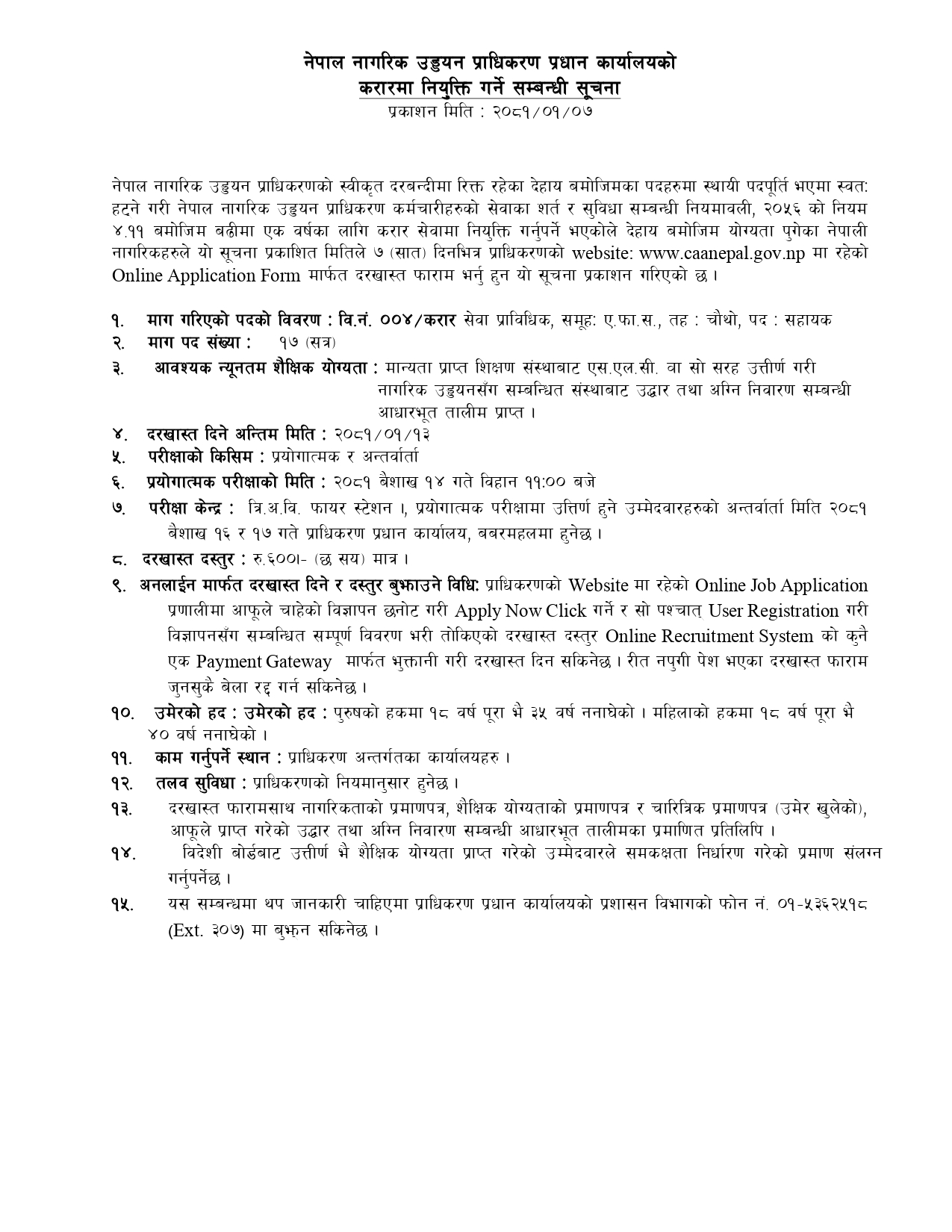 करारमा नियुक्ति गर्ने सम्बन्धी सूचना