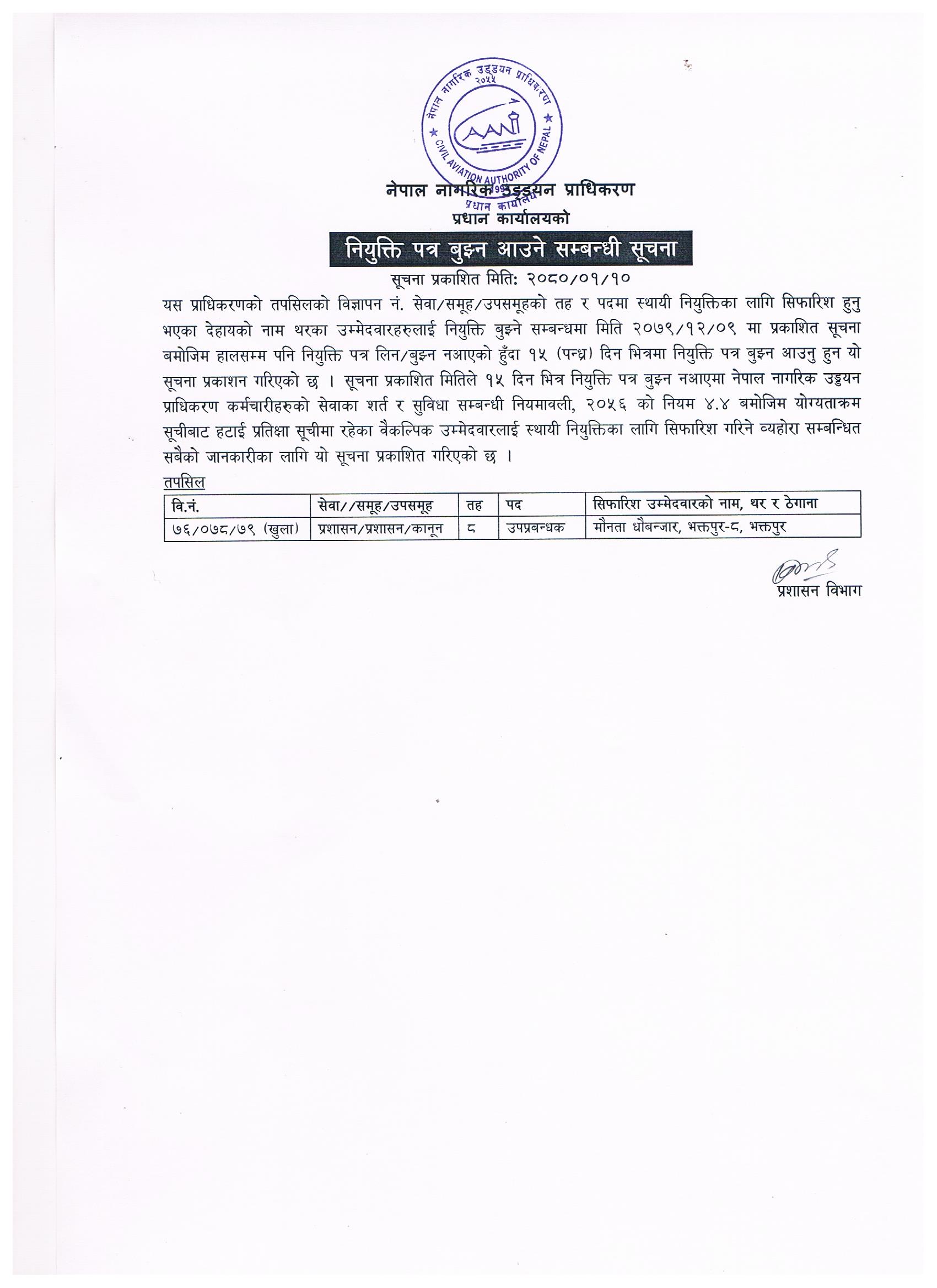 नियुक्ति पत्र बुझन आउने सम्बन्धी सूचना