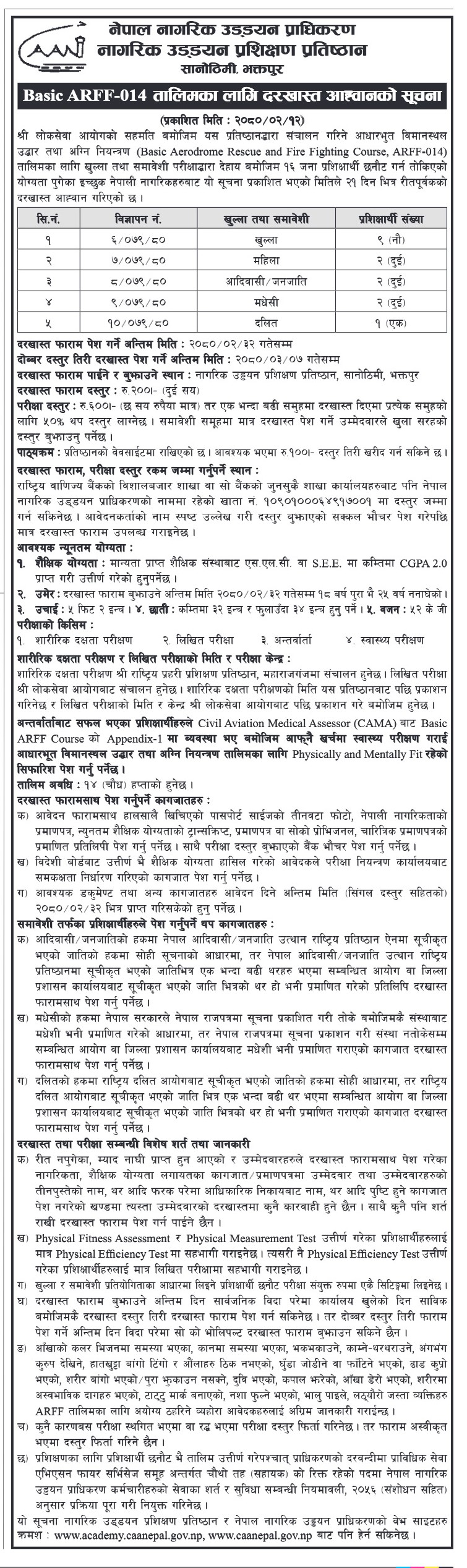 BASIC ARFF-014 तालिमका लागि दरखास्त आह्वानको सूचना |