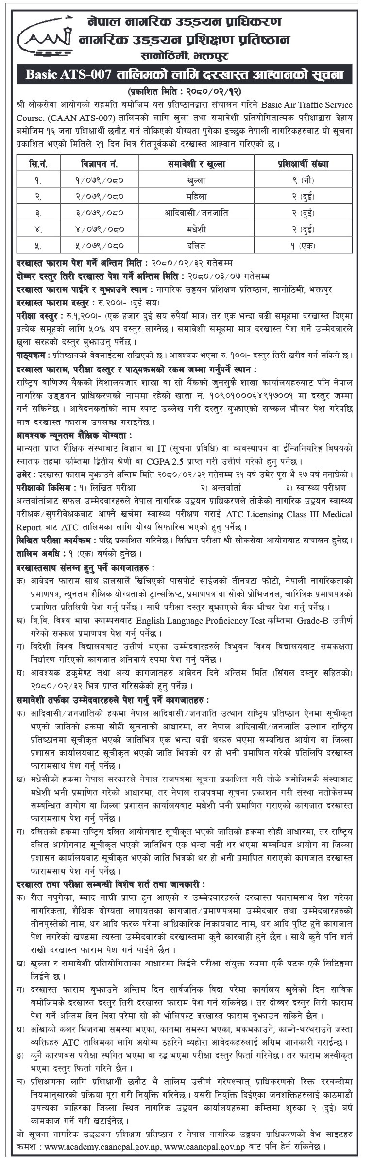 BASIC ATS-007 तालिमको लागि दरखास्त आह्वानको सूचना |