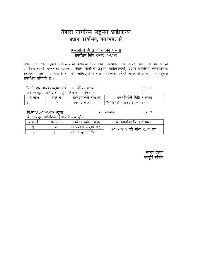 अन्तर्वार्ता मिति तोकिएको सूचना