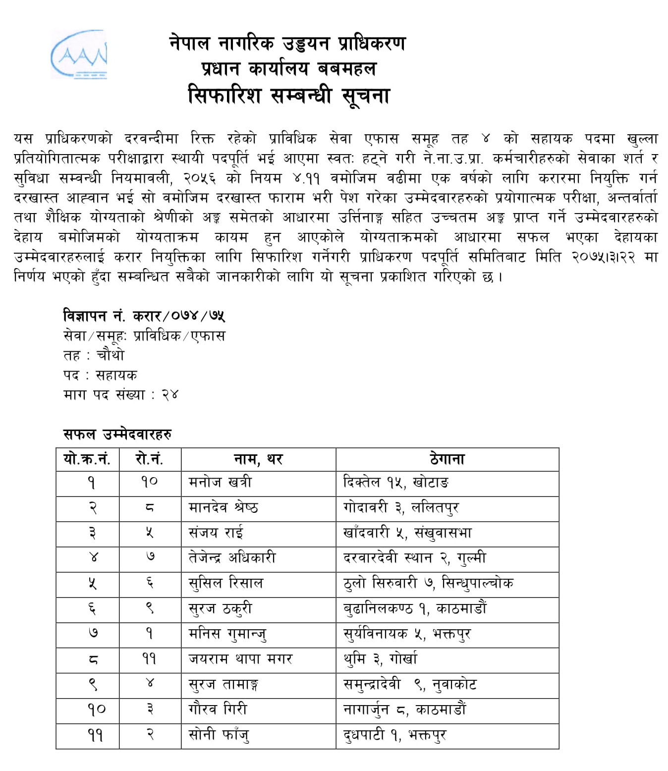 प्राविधिक सेवा एफास समूह तह ४ सिफारिश सम्बन्धी सूचना