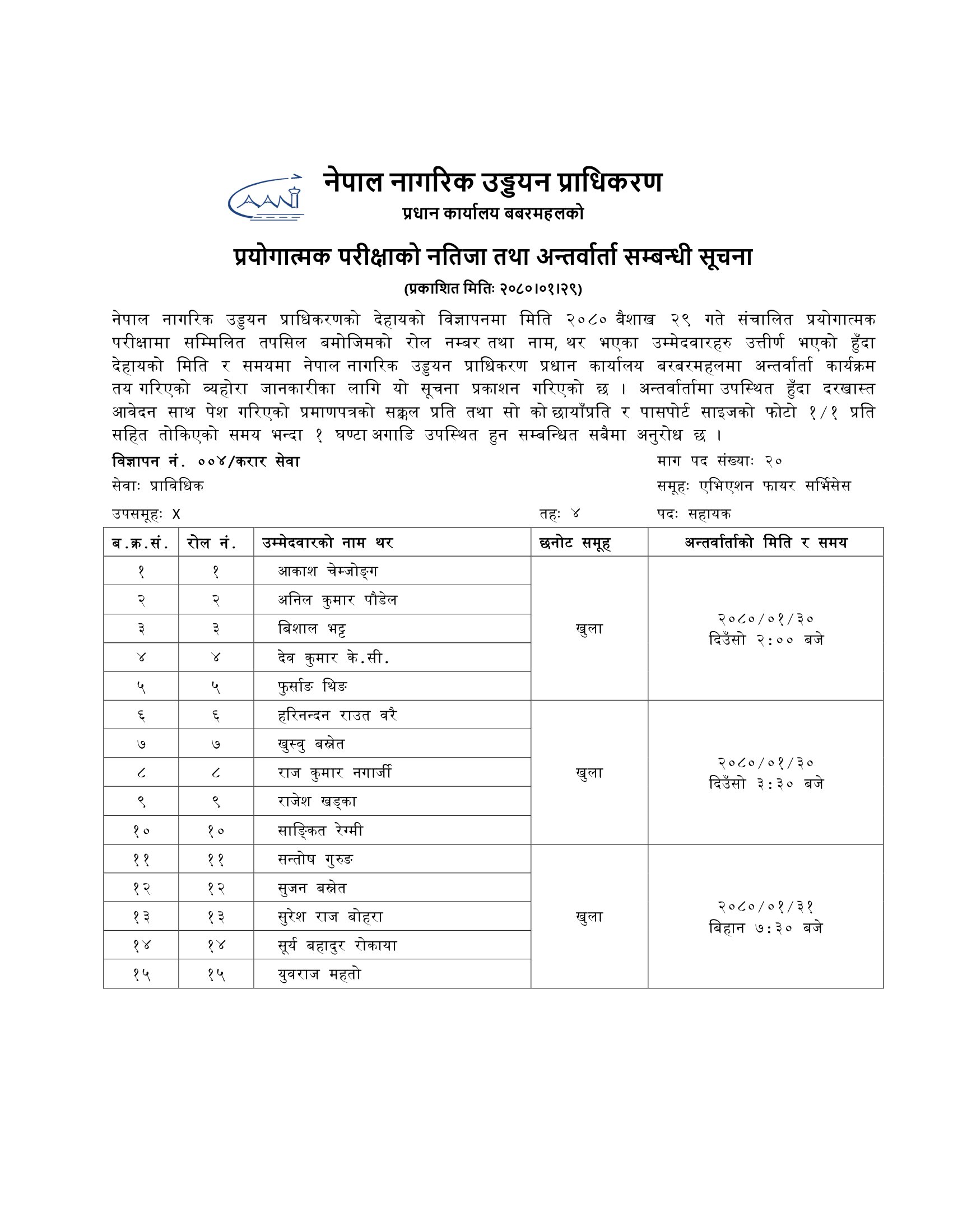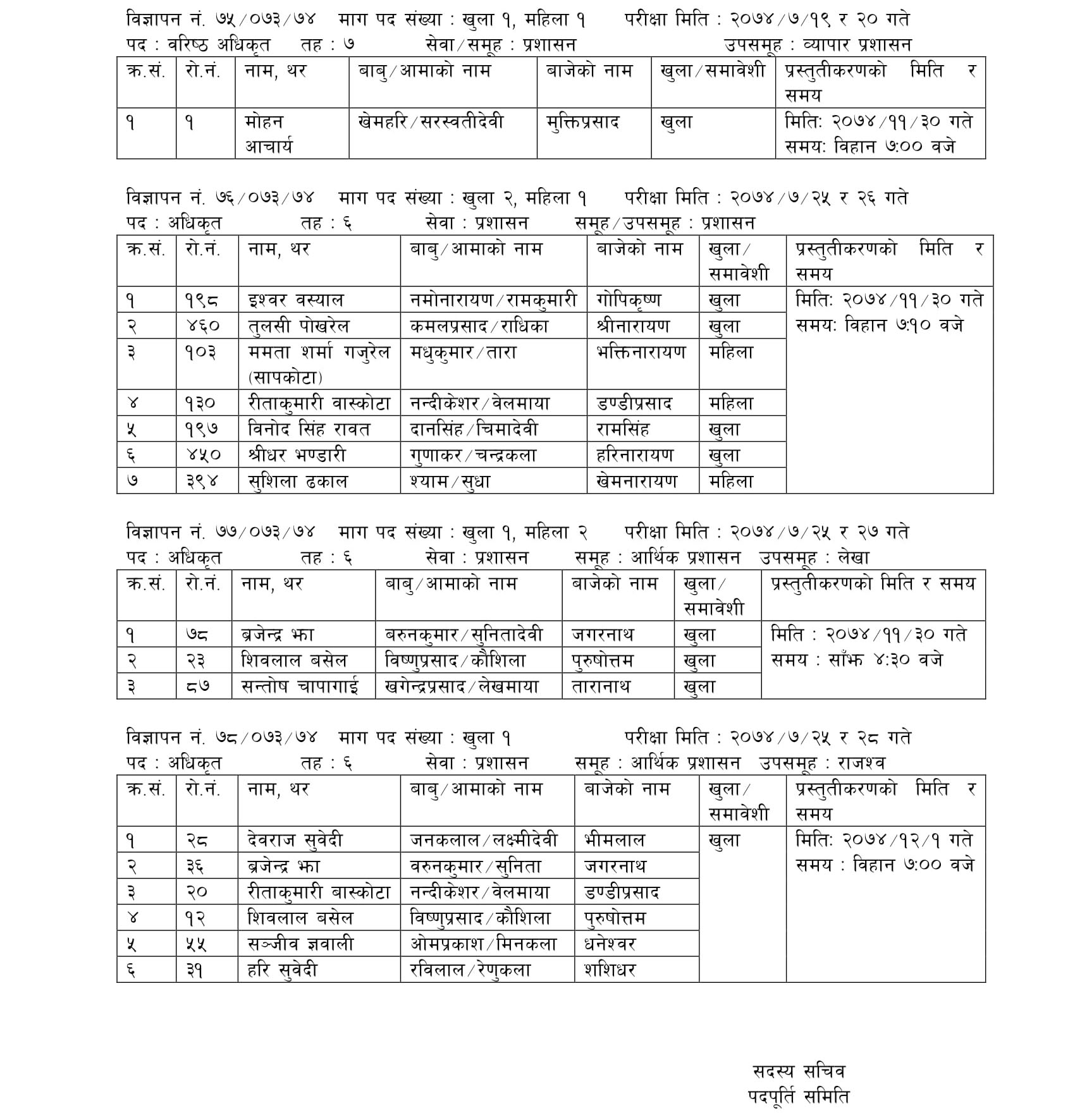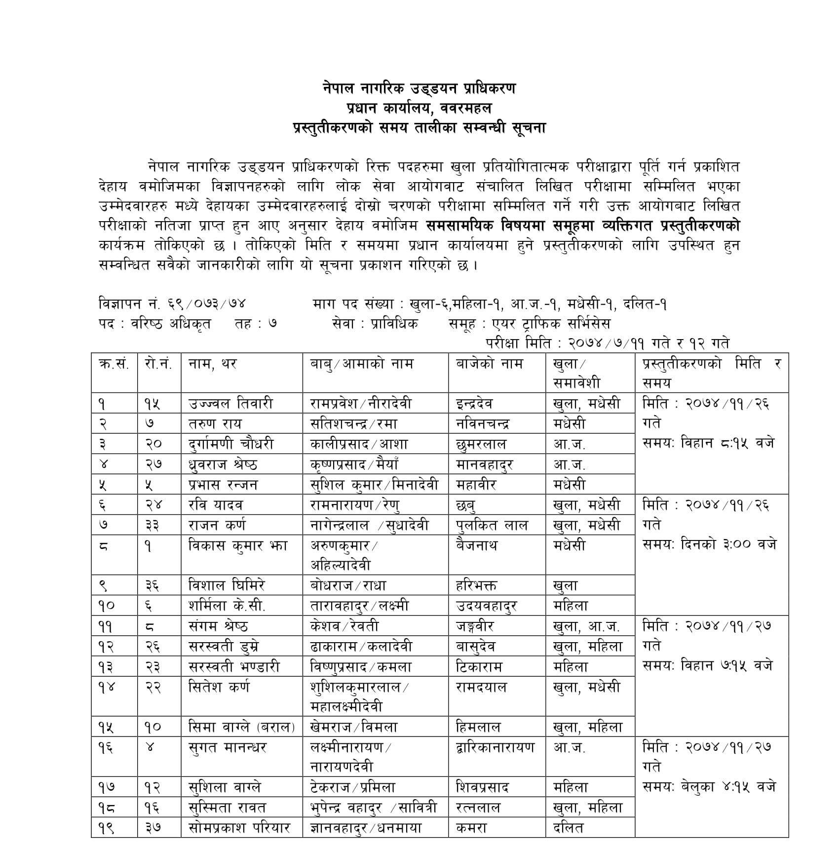 वि‍.न. ६९-७८/०७३/७४ काे प्रस्तुतीकरणको समय तालीका सम्बन्धी सूचना