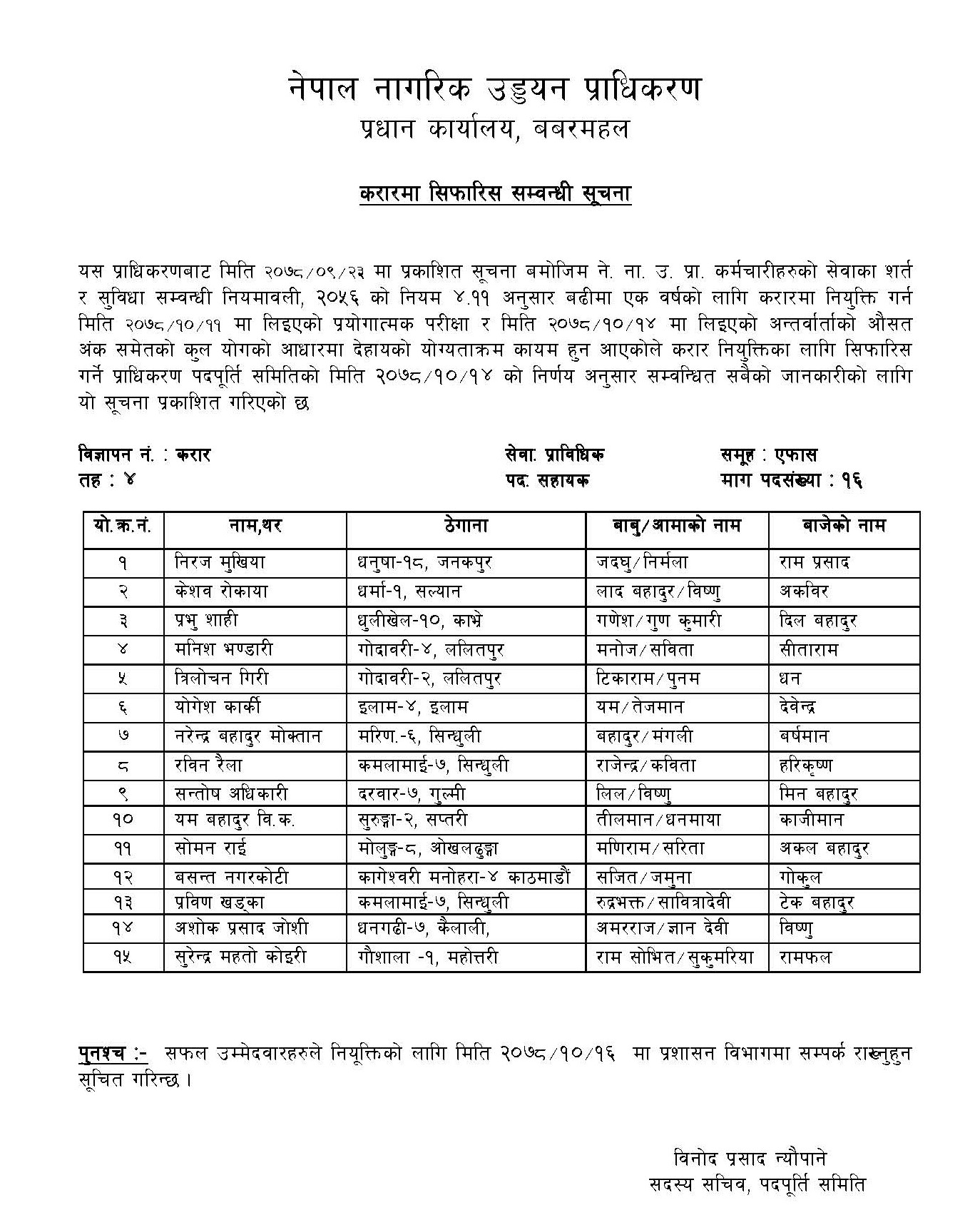 करारमा सिफारिस सम्वन्धी सूचना -AFS Contract