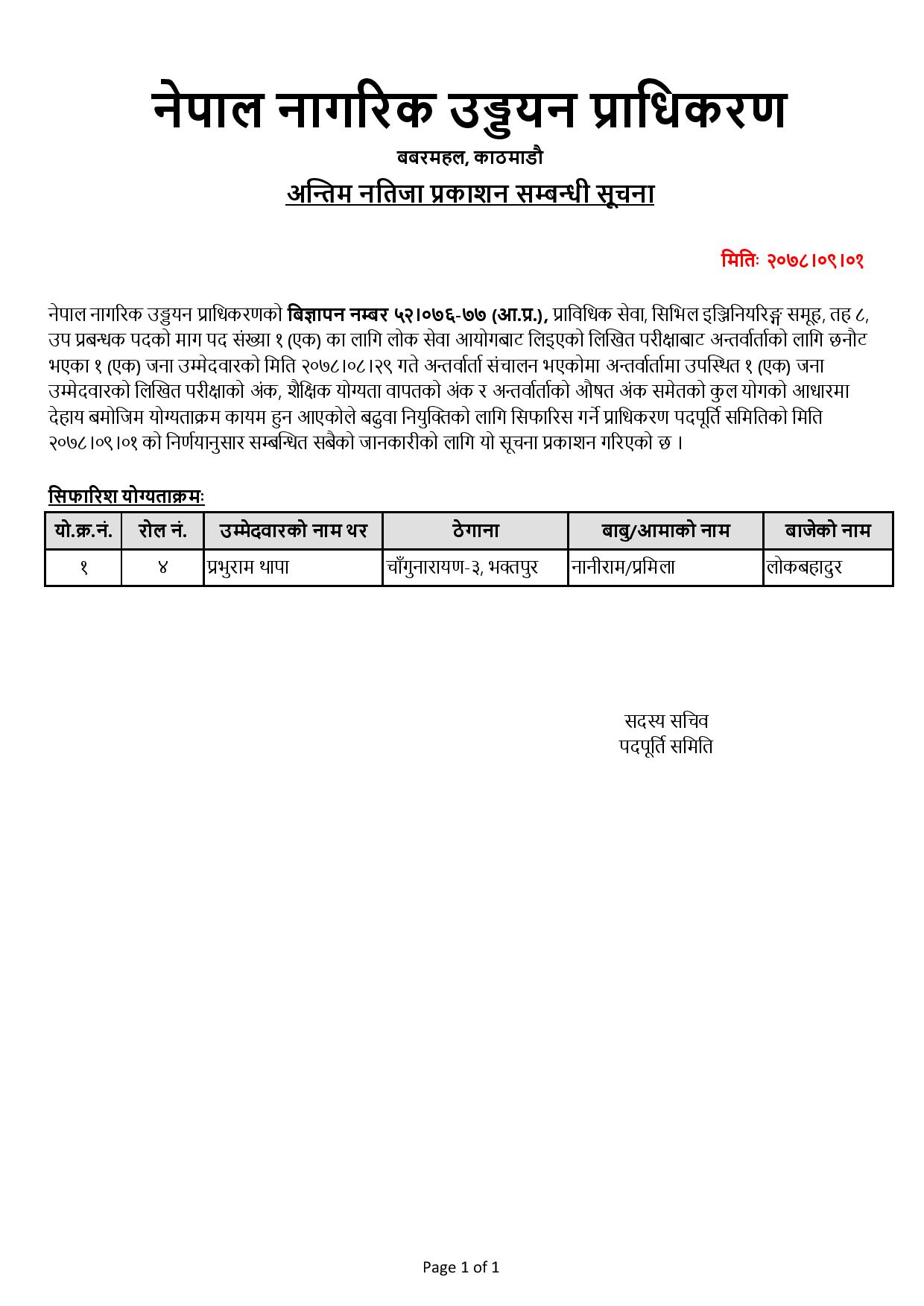 अन्तिम नतिजा प्रकाशन सम्बन्धी सूचना (५२/०७६/७७ )