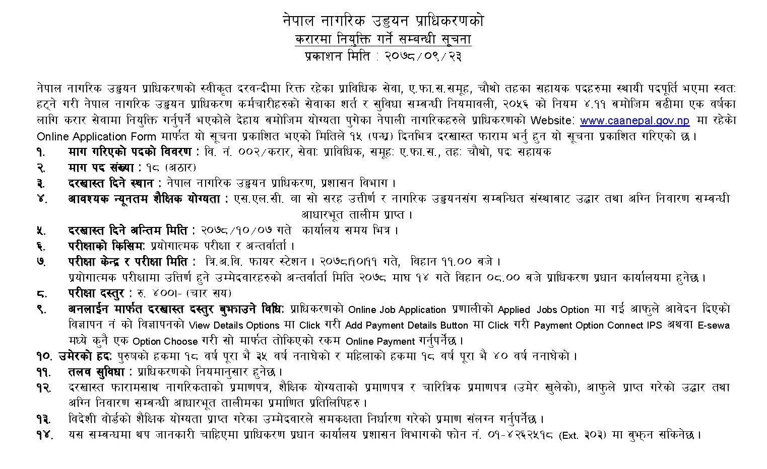 करारमा नियुक्ति गर्ने सम्बन्धी सूचना -AFS