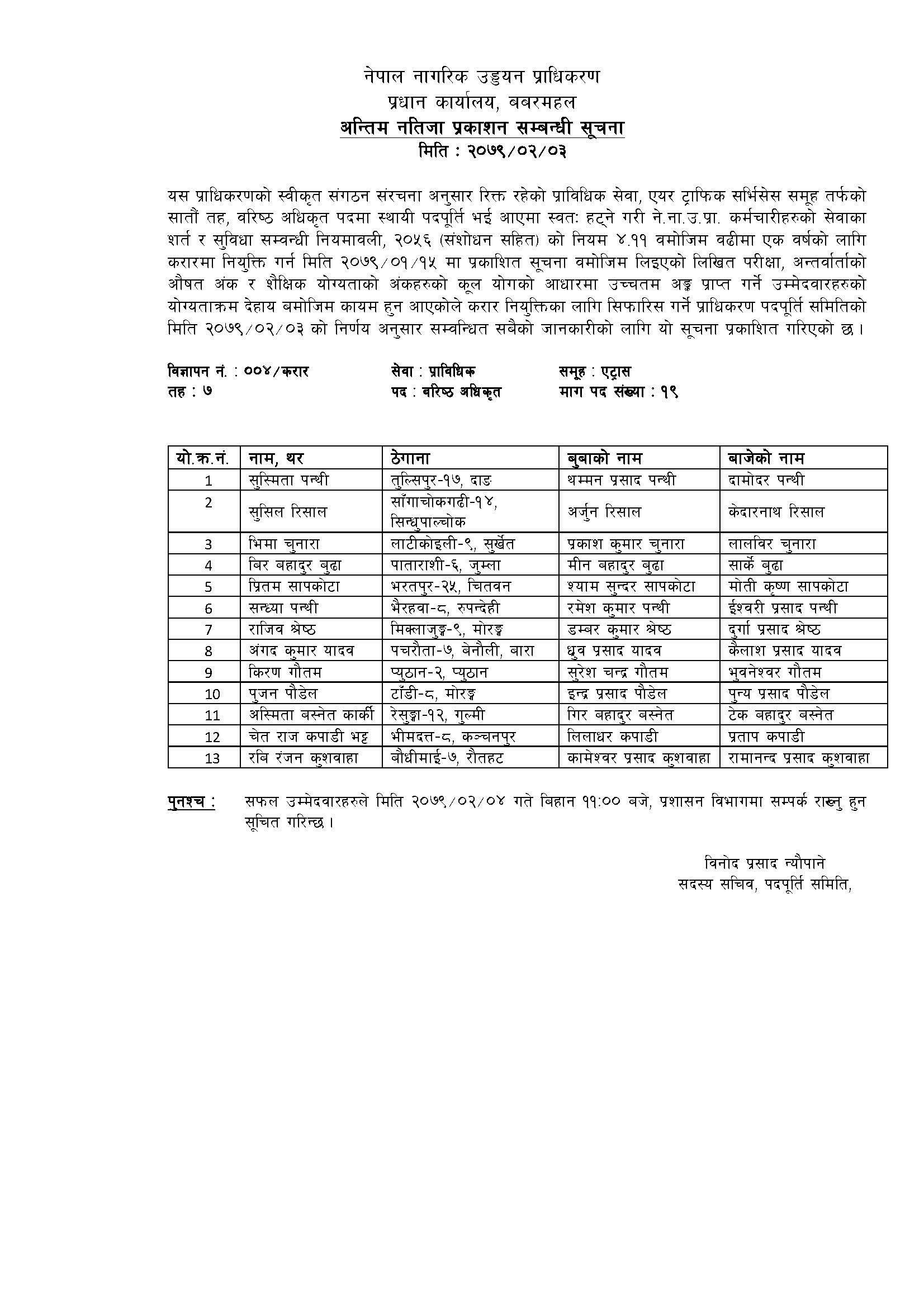 अन्तिम नतिजा प्रकाशन सम्बन्धी सूचना (ATS 004)