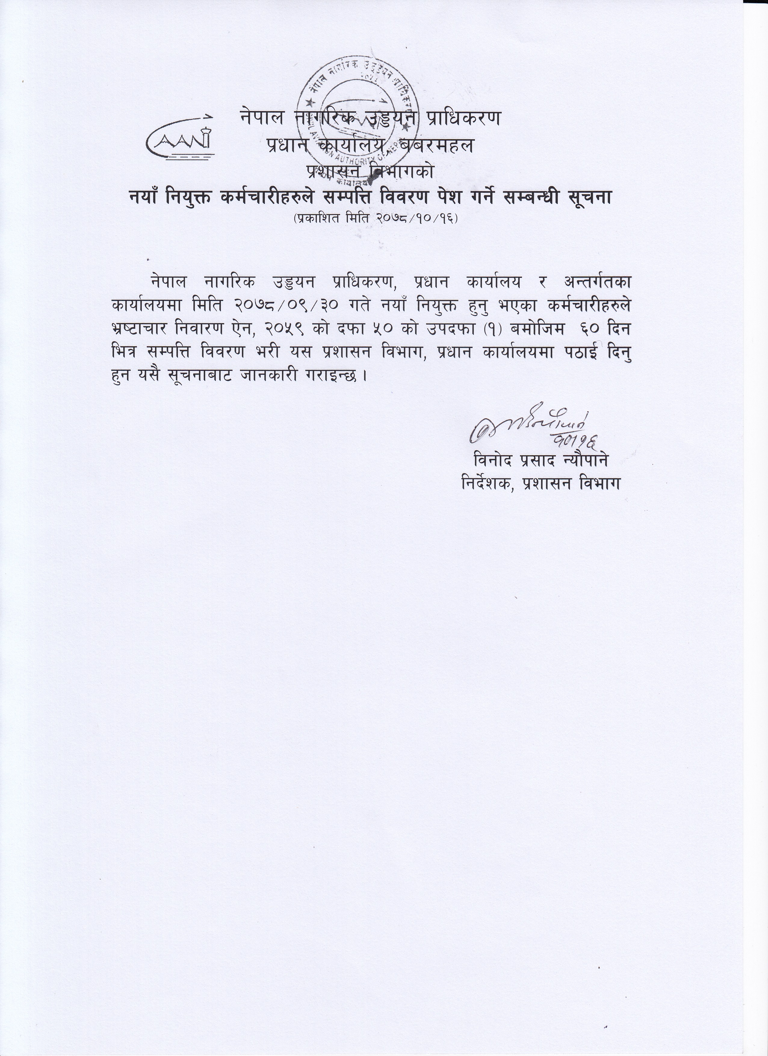 नयाँ नियुक्त कर्मचारीहरुले सम्पति विवरण पेश गर्ने सम्बन्धी सूचना
