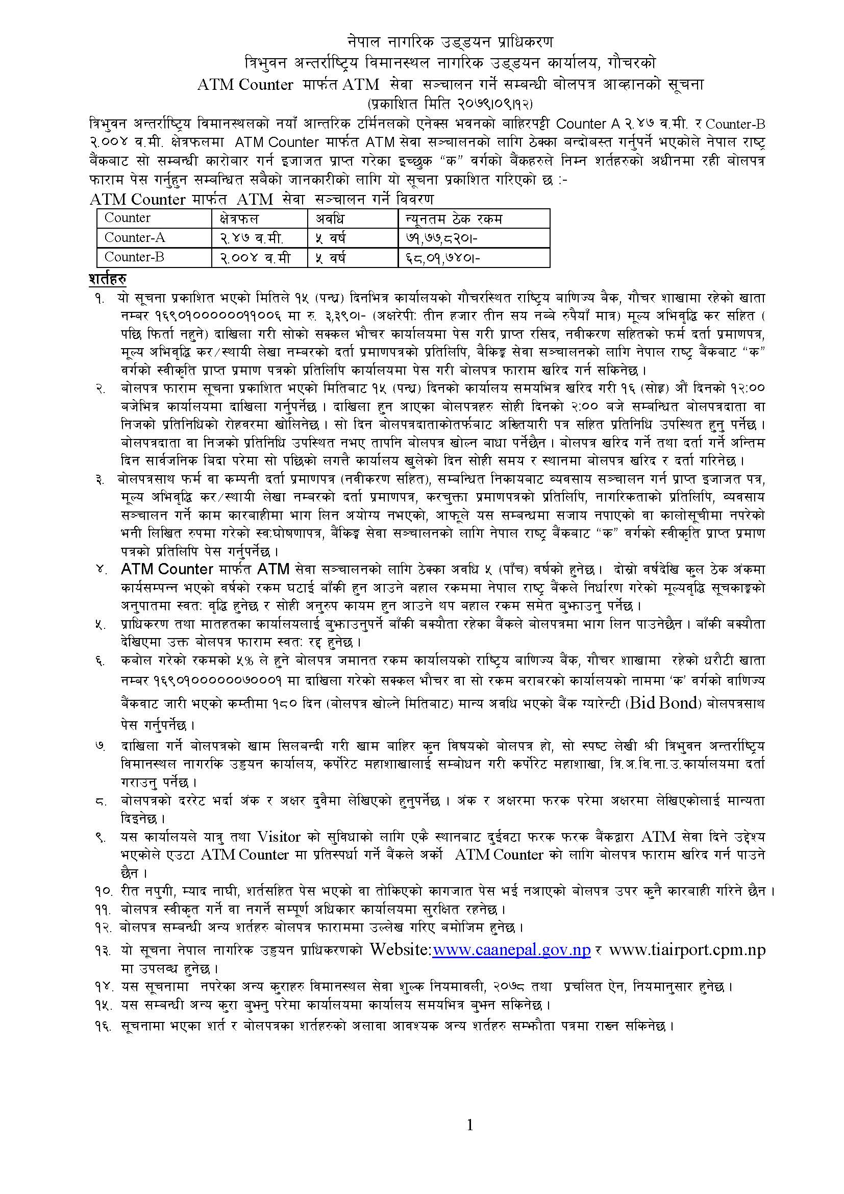 त्रि.अ.वि.ना.उ.का., गौचरको ATM Counter मार्फत ATM सेवा सञ्चालन गर्ने सम्बन्धी बोलपत्र आव्हानको सूचना