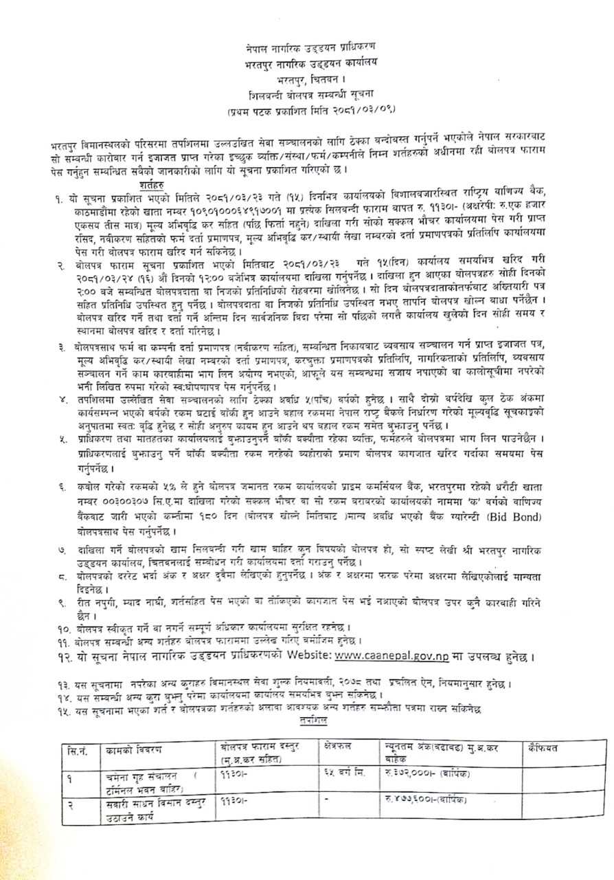शिलबन्दी बोलपत्र सम्बन्धी सूचना भरतपुर ना.उ.का.