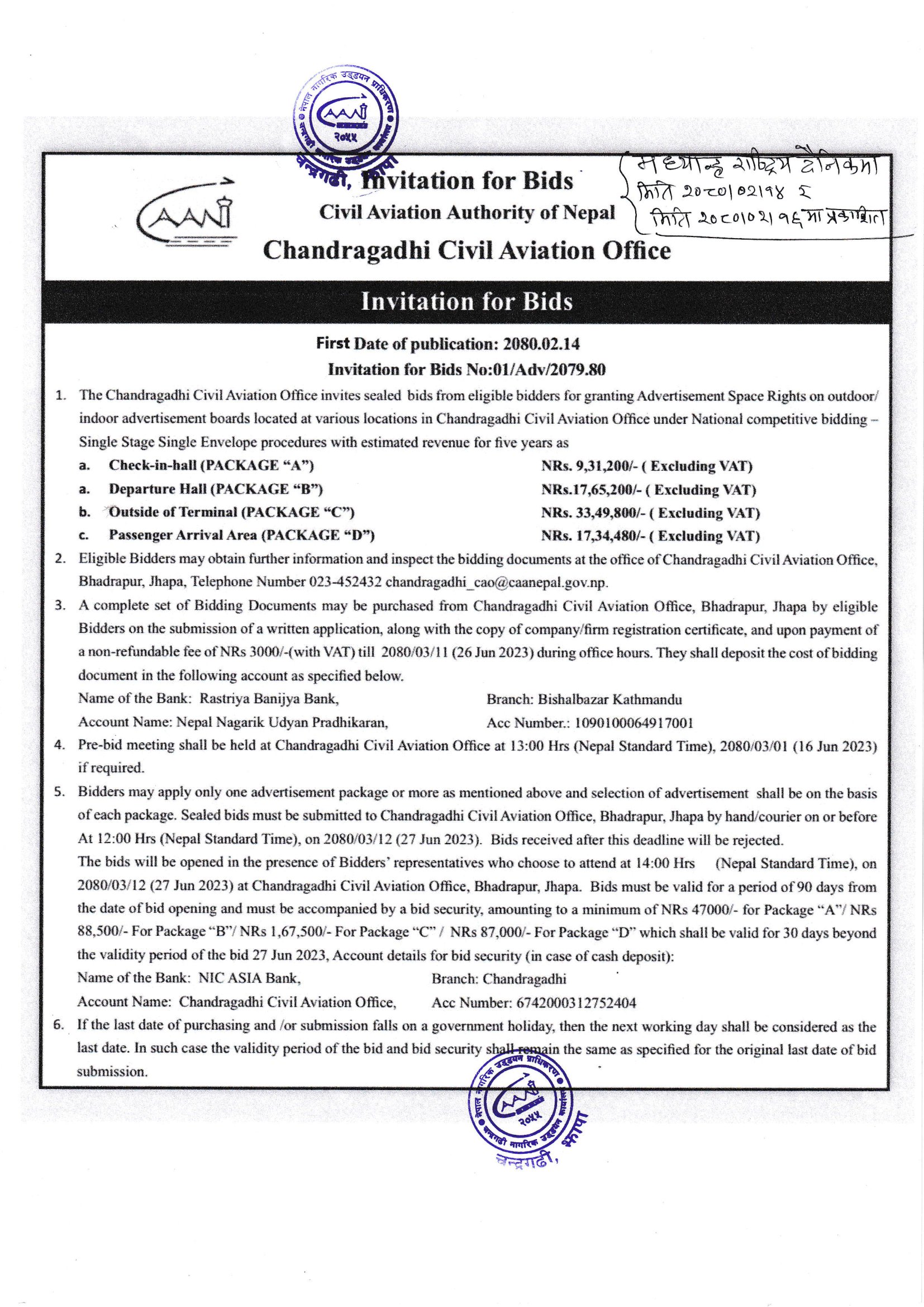 Invitation For Bids (Chandragadhi CAO)