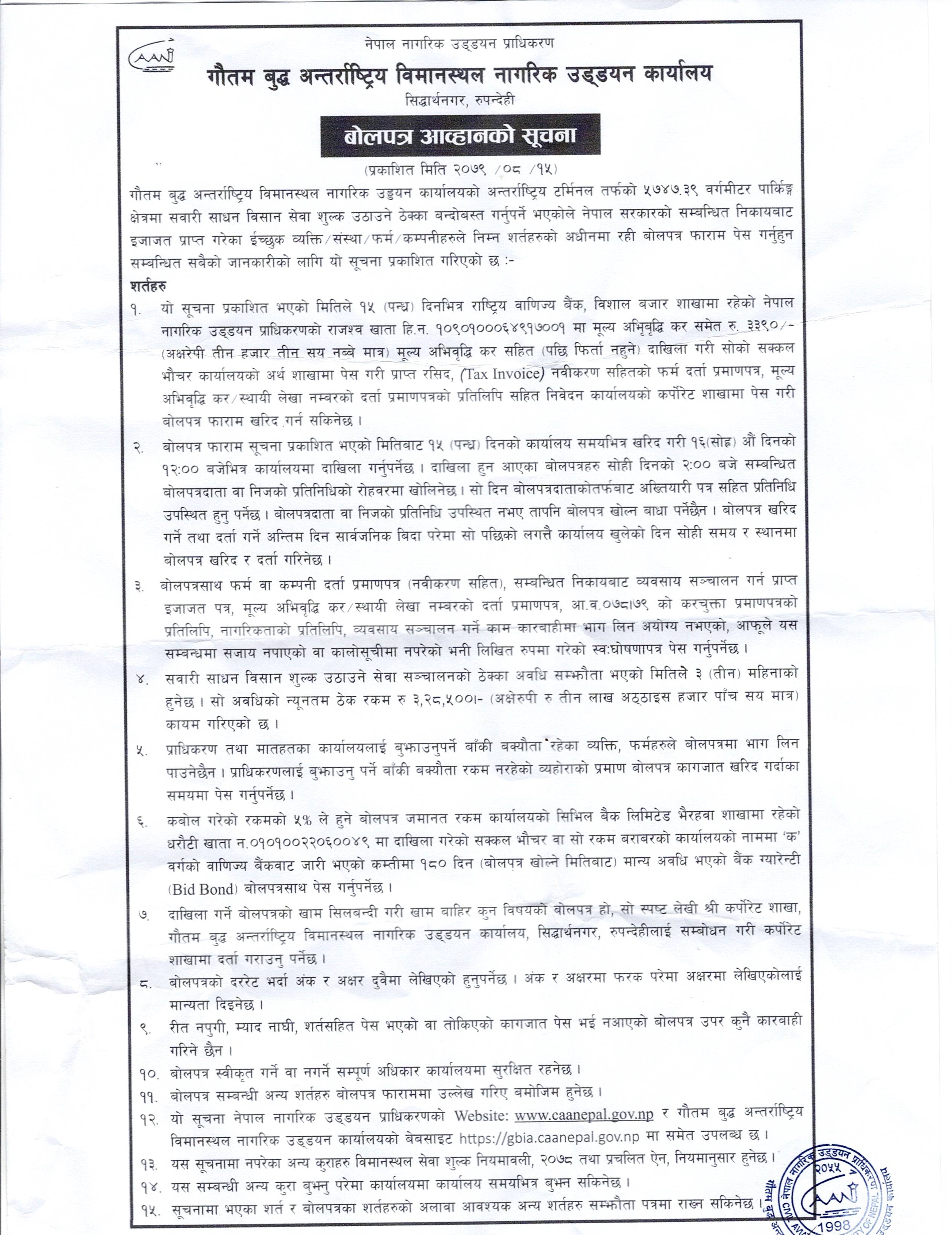 बोलपत्रआह्वानको सूचना (गौतम बुद्ध अन्तर्राष्ट्रिय विमानस्थल ना. उ.का.)