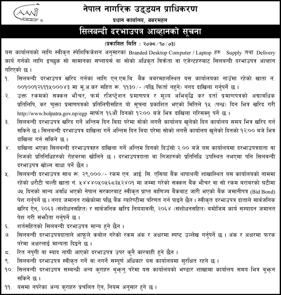 सिलबन्दी दरभाउपत्र आव्हानको सूचना (Branded Desktop Computer / Laptop)