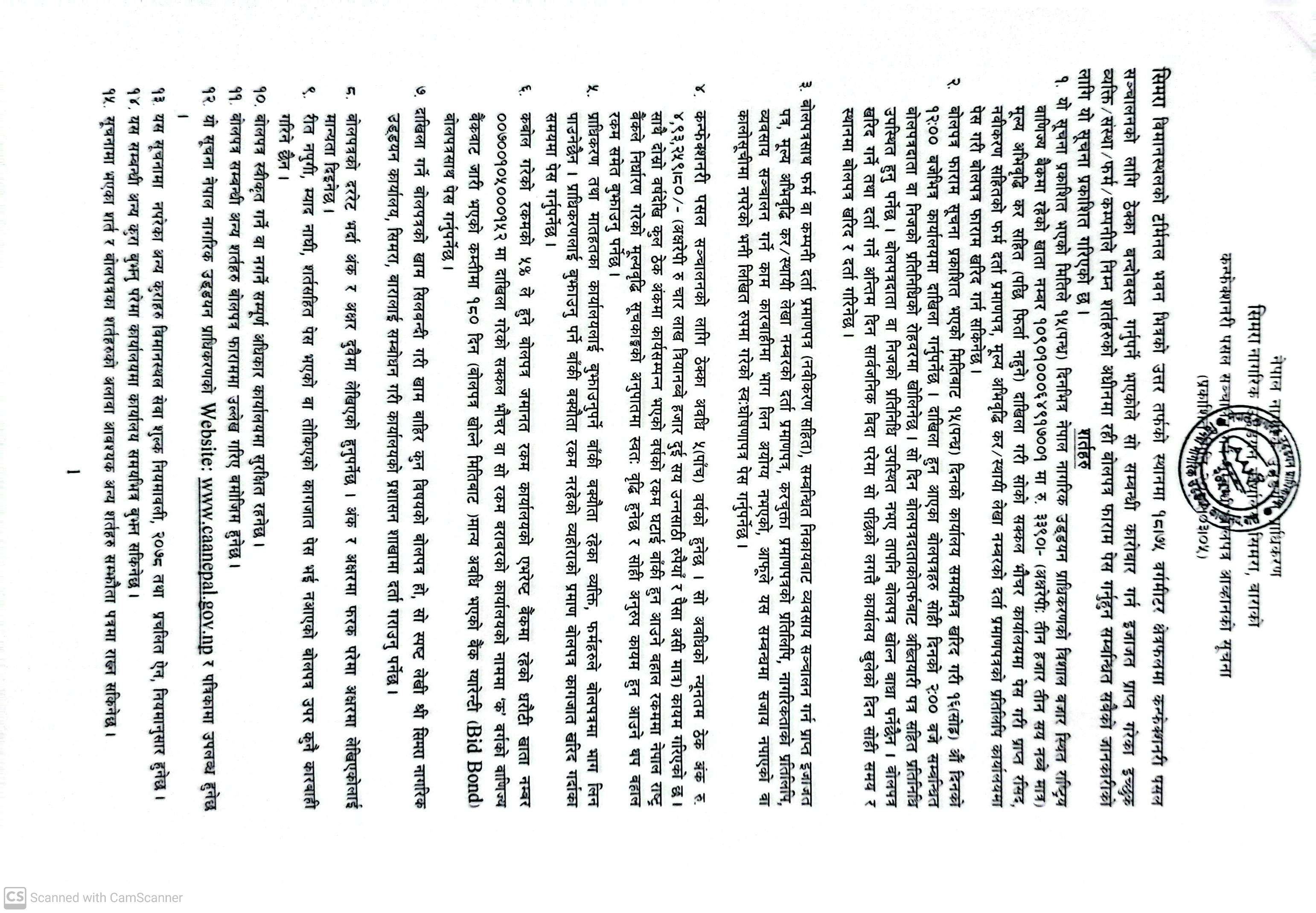 कन्फेक्सनरी पसल संचालन गर्ने सम्बन्धि बोलपत्र आह्वानको सूचना (सिमरा ना.उ.का.)