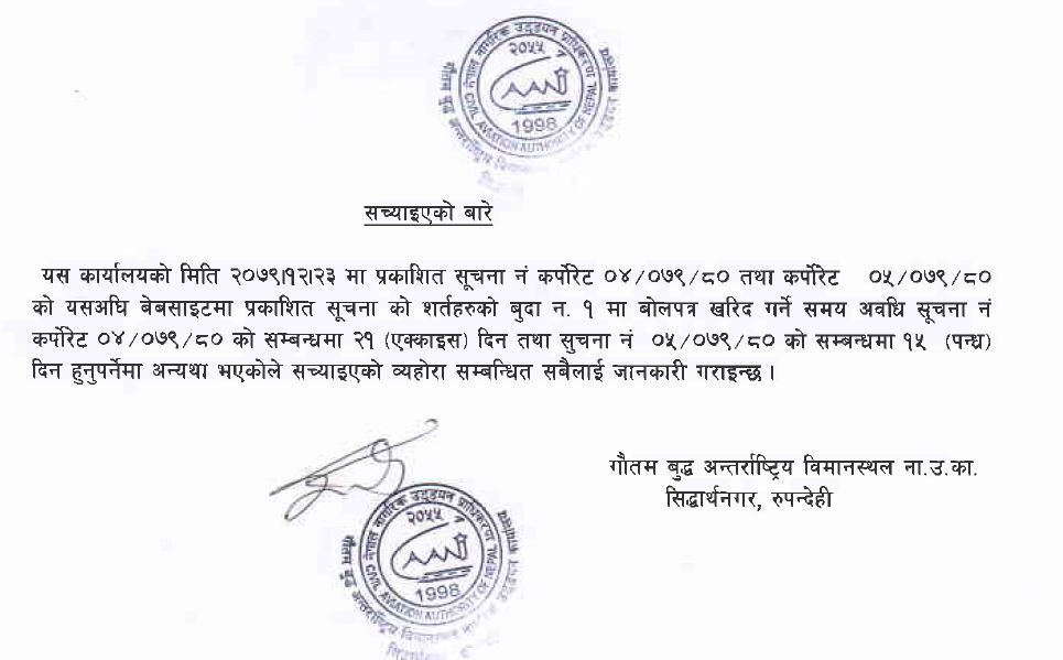 बोलपत्र सम्बन्धी सूचना सच्याइएको