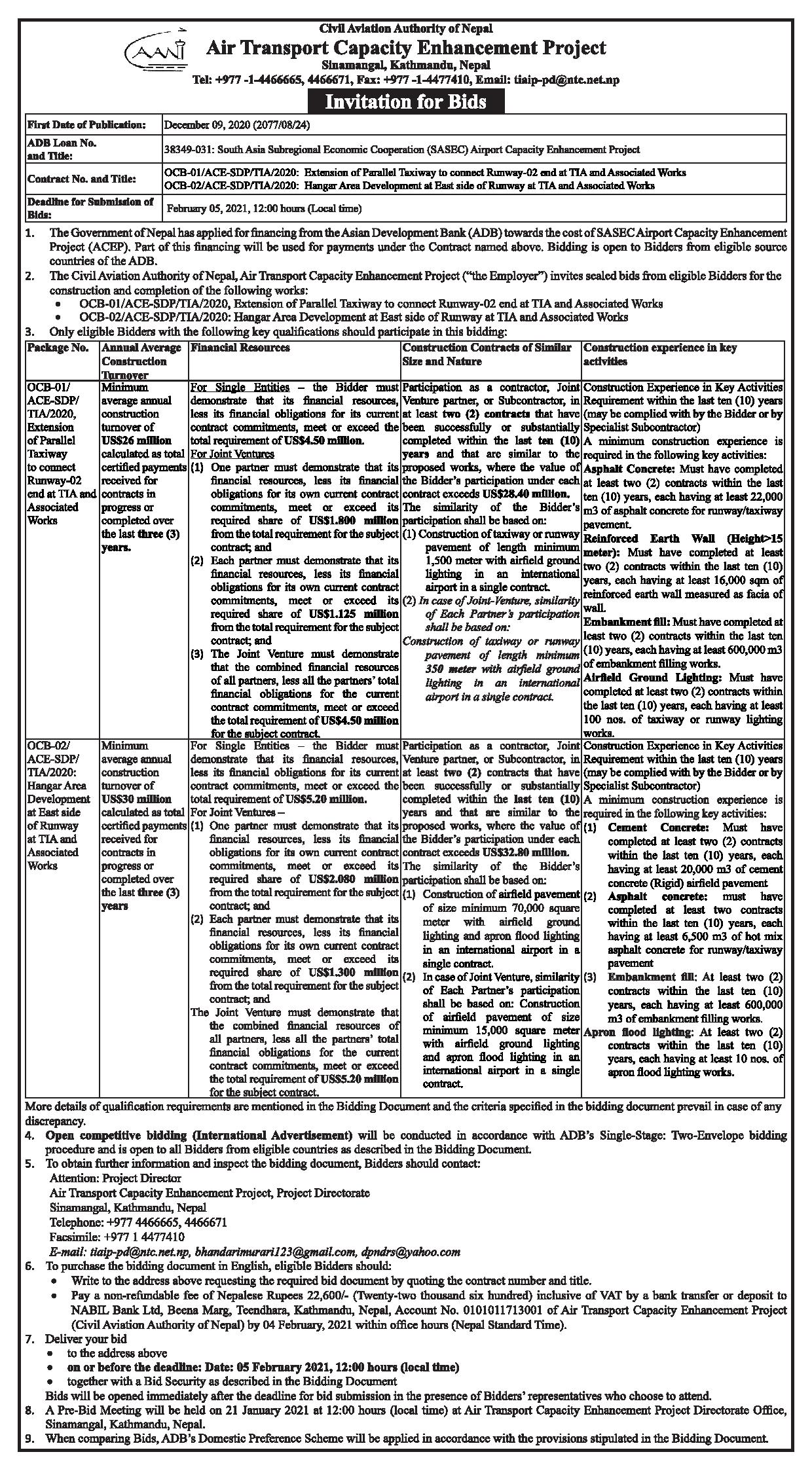 Invitation for Bids - Air Transport Capacity Enhancement Project
