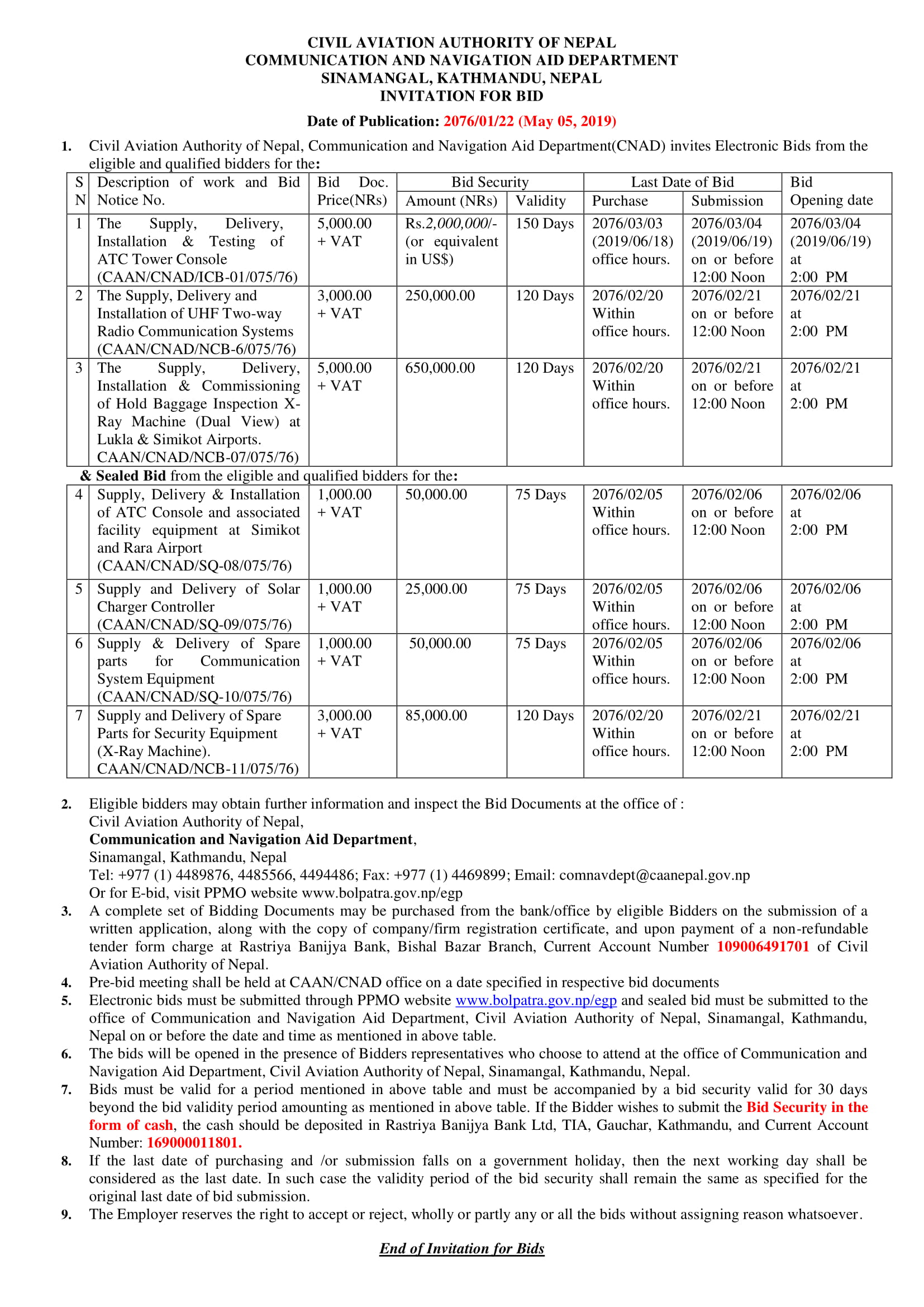 Invitation for Bids CNAD ICB-01/NCB-6-11