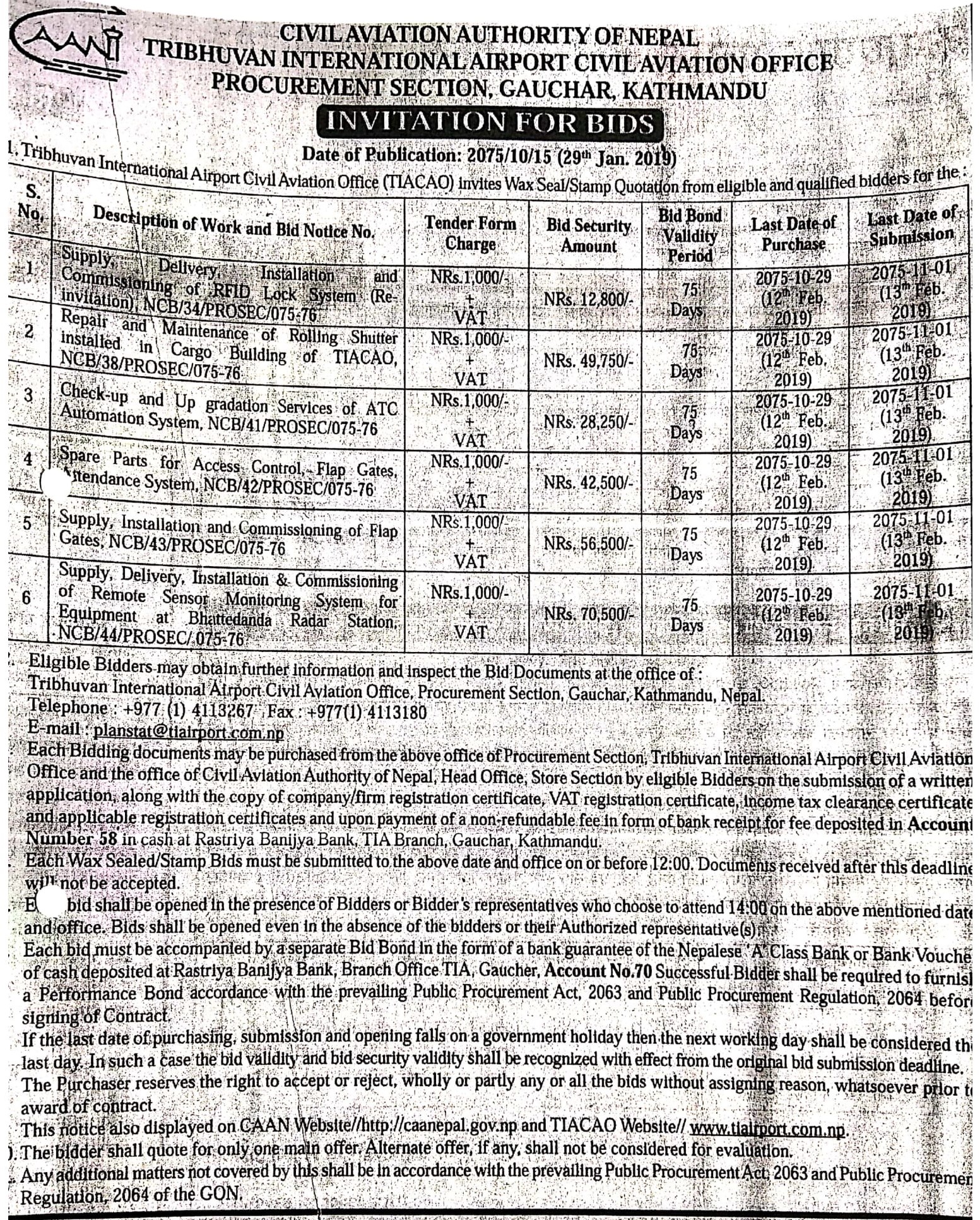 Invitation for Bids NCB/34,38,41-44/PROSEC/075-76