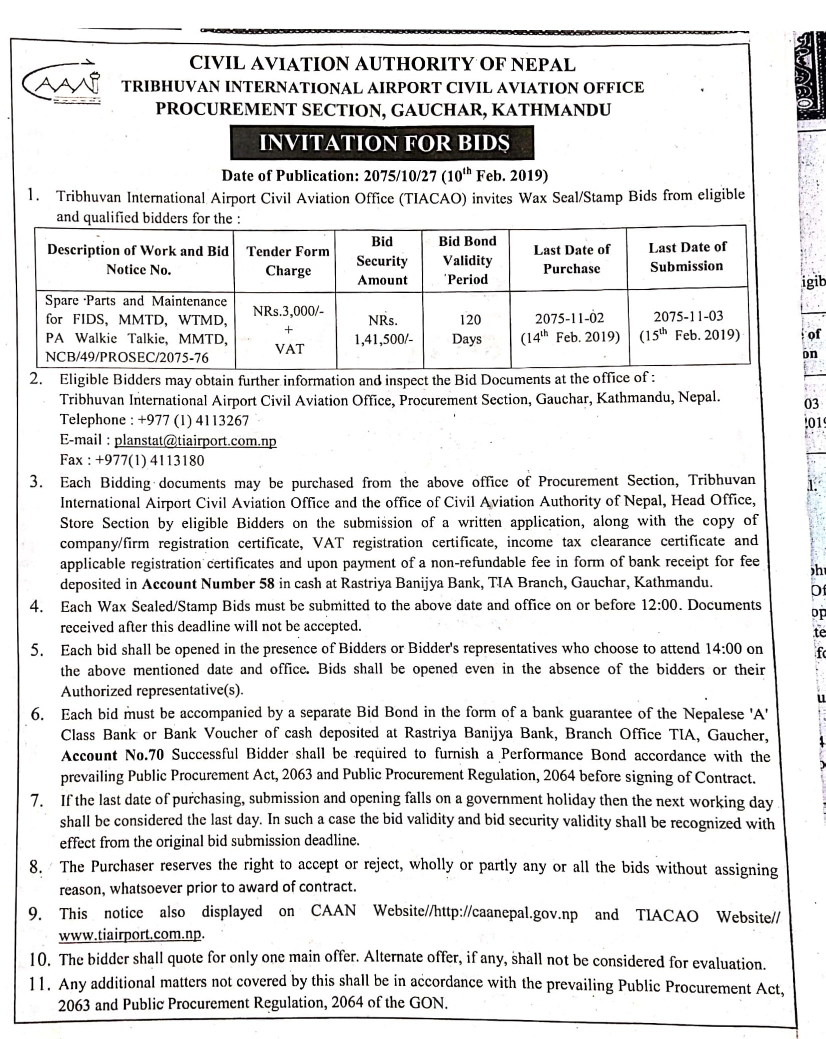 Invitation For Bids NCB/49/PROSEC/2075-76