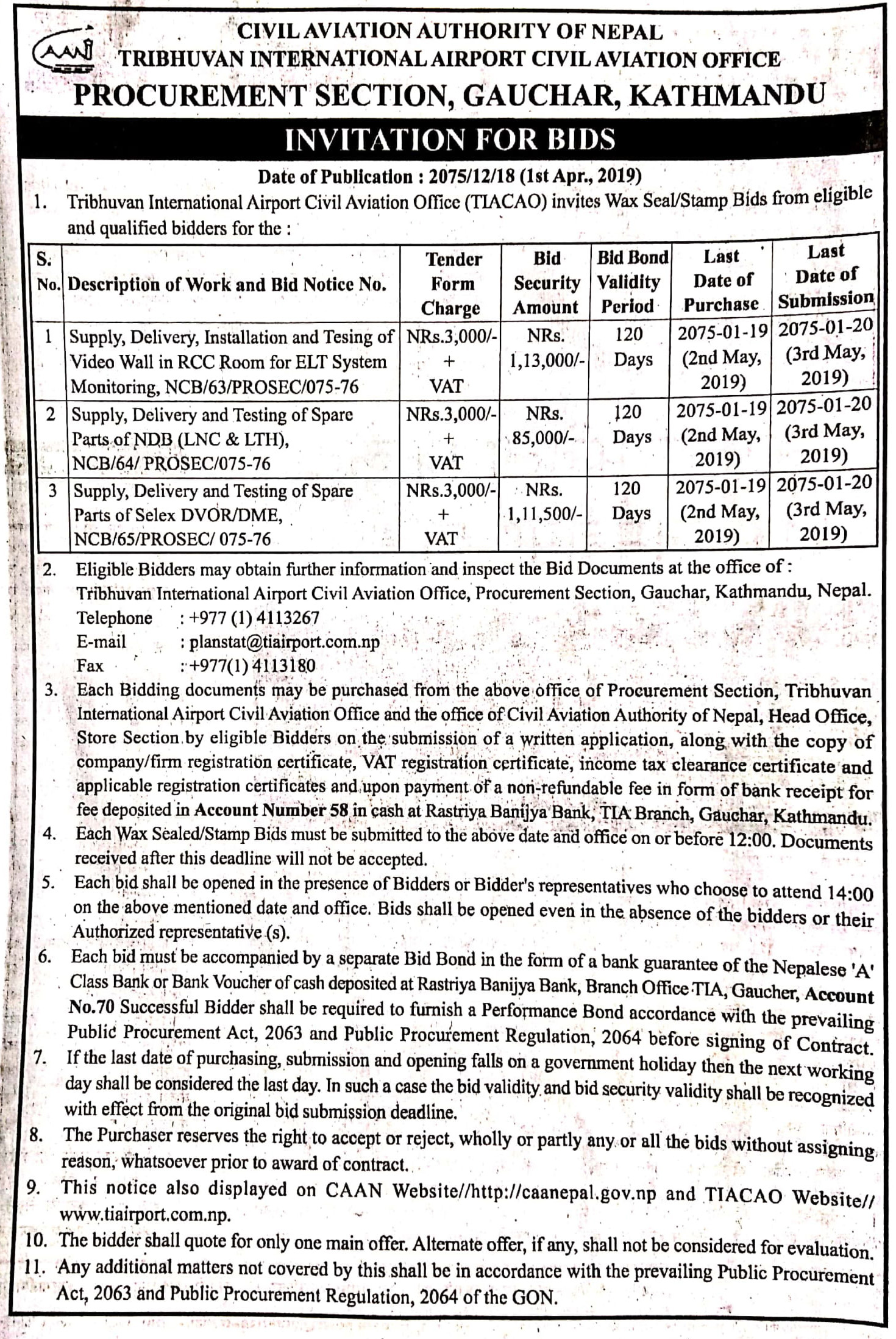 Invitation for Bids NCB/63-65/PROSEC/075-76