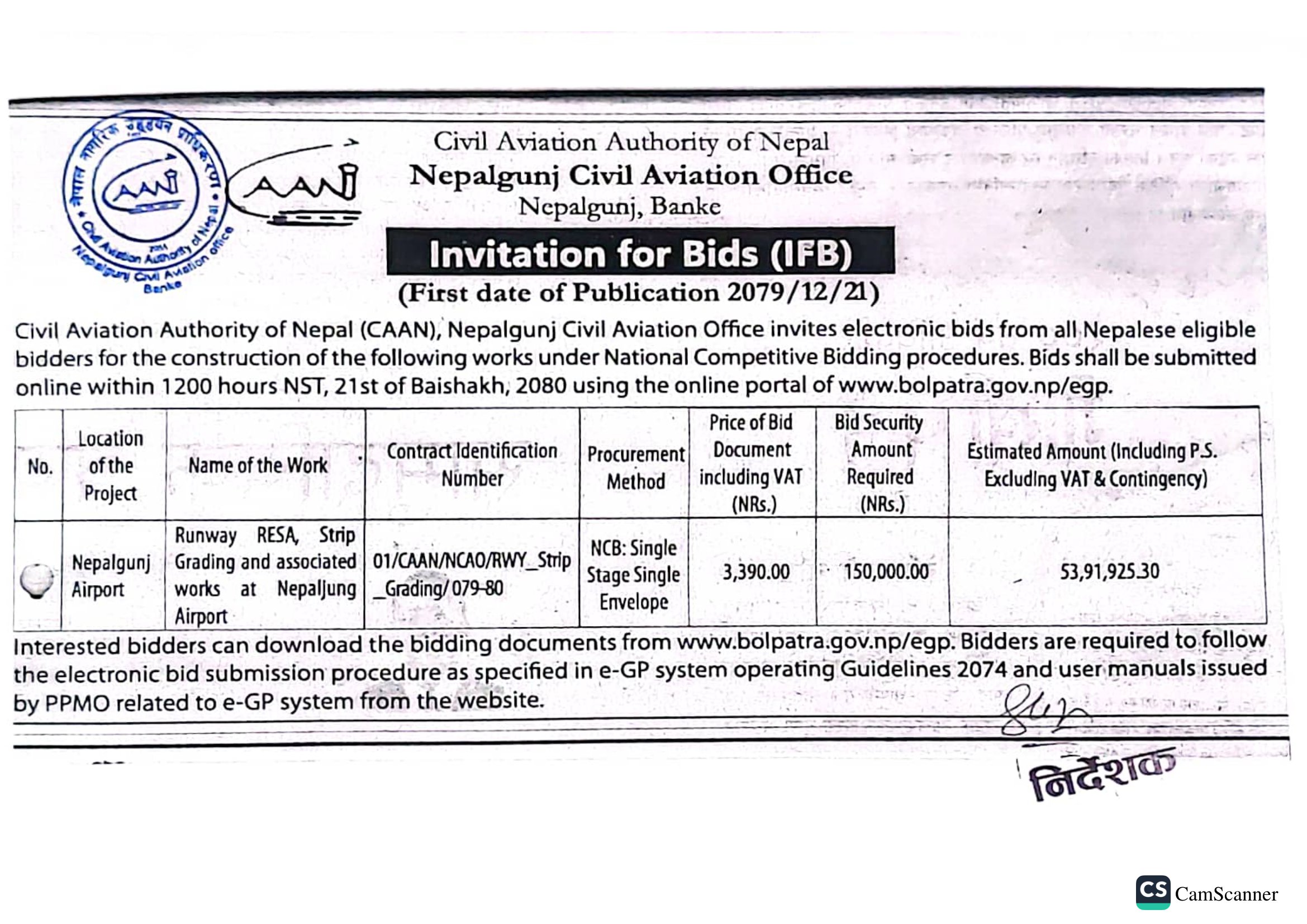 Invitation for e-Bids (Nepalgunj CAO)