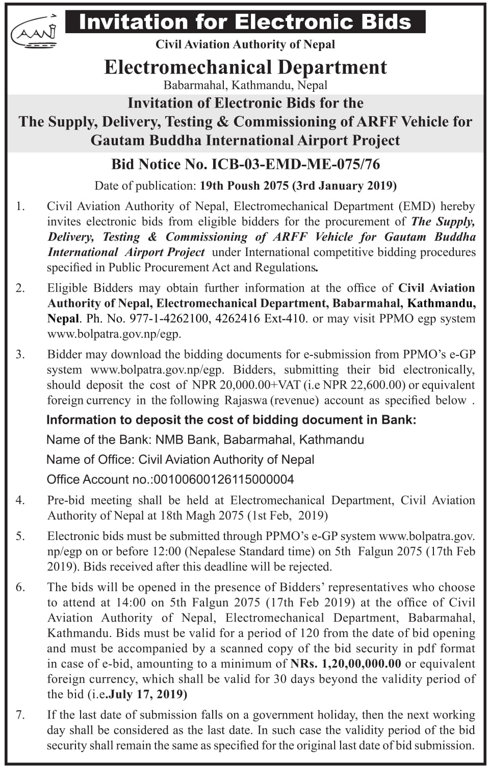 Invitation for E-Bids ICB-03-EMD-ME-075/76
