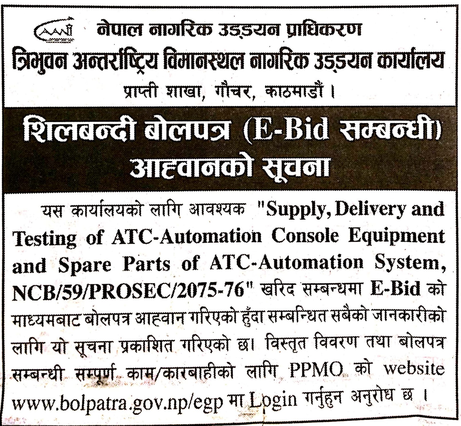 Invitation for E-Bids NCB/59/PROSEC/075-76