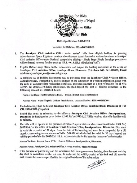 Invitation For Bids No: 002/ADV/2081/82 ( JANAKPUR CAO)