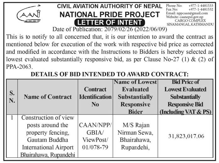 Letter of Intent (CAAN/NPP/GBIA/Viewpost/01/078-79)