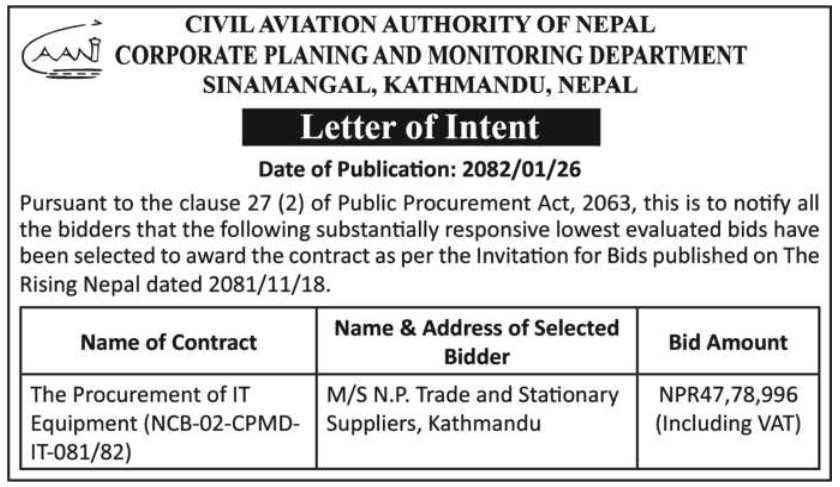 LOI - Procurement of IT Equipment (NCB-02-CPMD-IT-081/82)