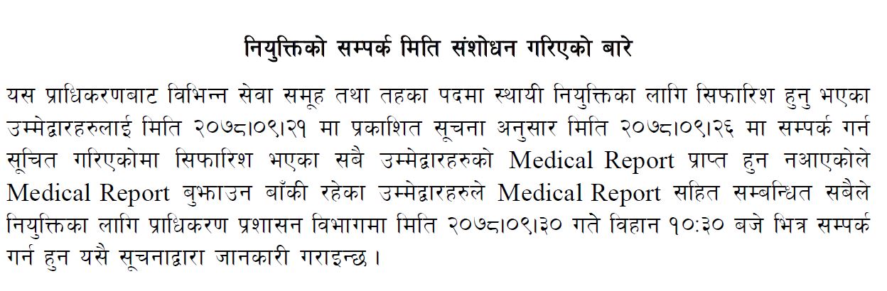 नियुक्तिको सम्पर्क मिति संशोधन गरिएको बारे