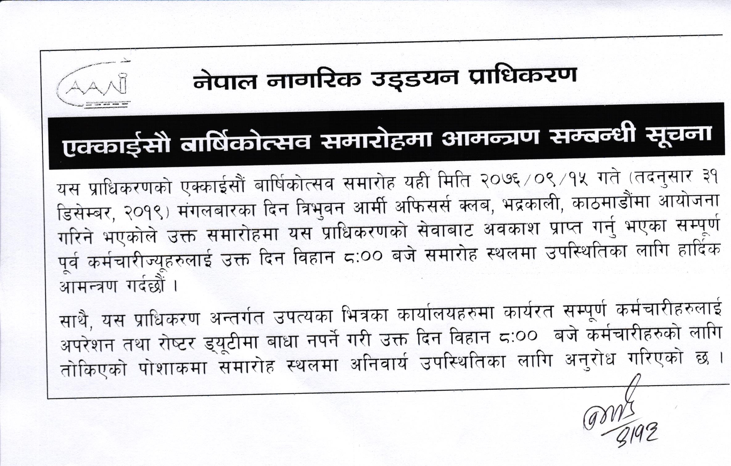 एक्काईसौ वार्षिकोत्सव समारोहमा आमन्त्रण सम्बन्धी सूचना