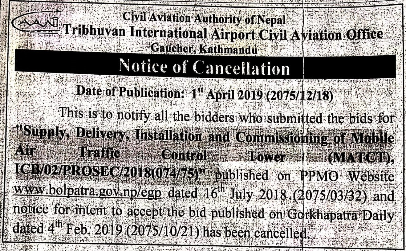 Notice of Cancellation ICB/02/PROSEC/2018(074/75)
