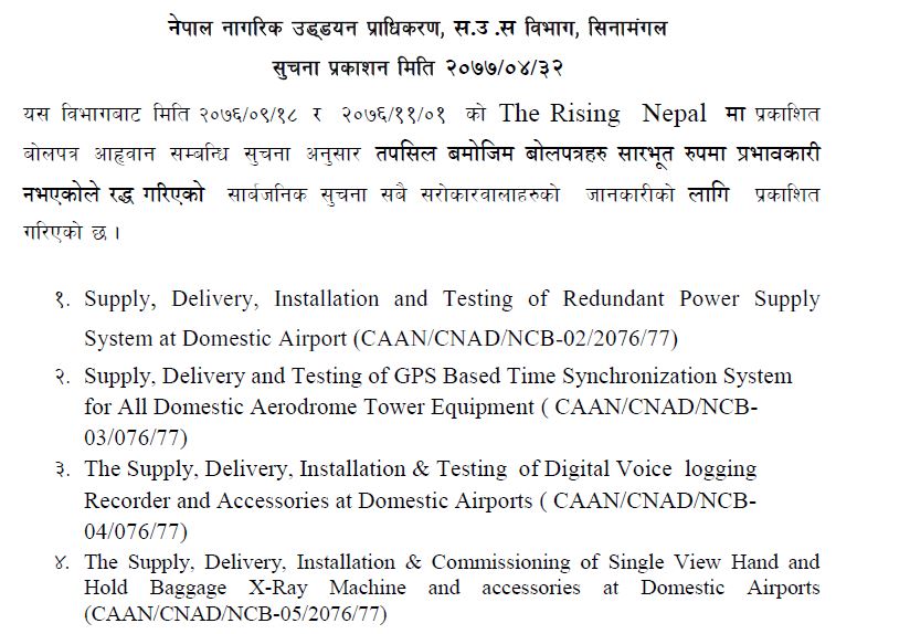 Notice for Cancellation of Tender - CNAD