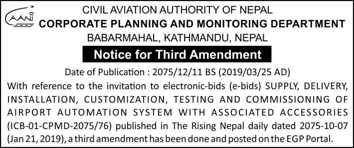 Notice for Third Amendment ICB-01-CPMD-2075/76