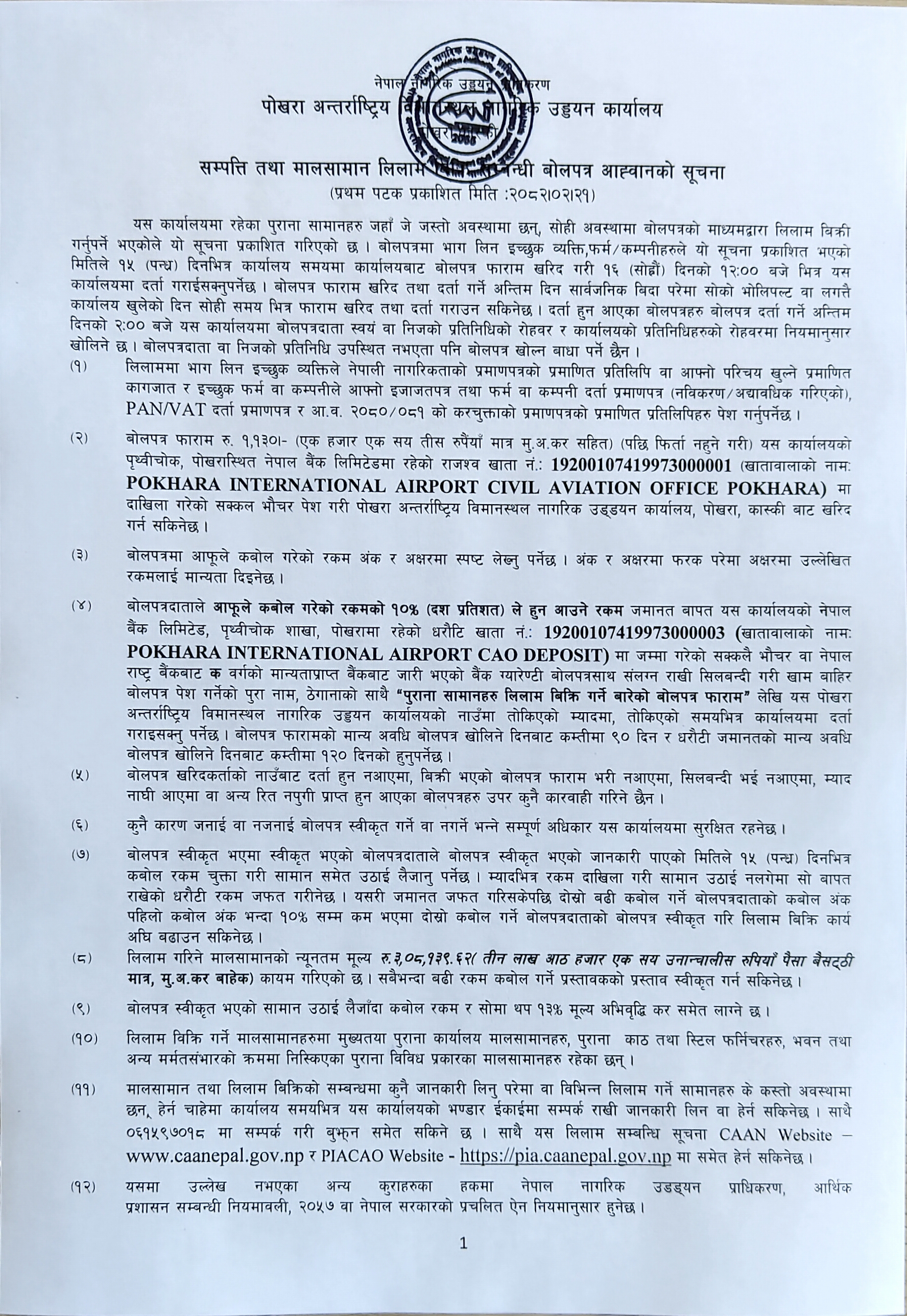 सम्पत्ति तथा मालसामान लिलाम बिक्रि सम्बन्धी बोलपत्र आव्हानको सूचना (पो.अ.वि.ना.उ.का.)