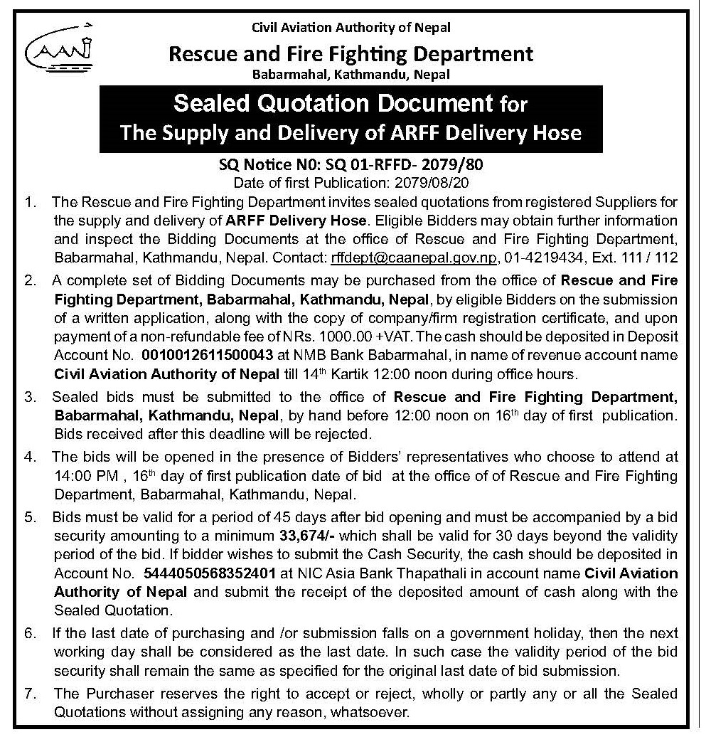 Sealed Quotation Document for The Supply and Delivery of ARFF Delivery Hose