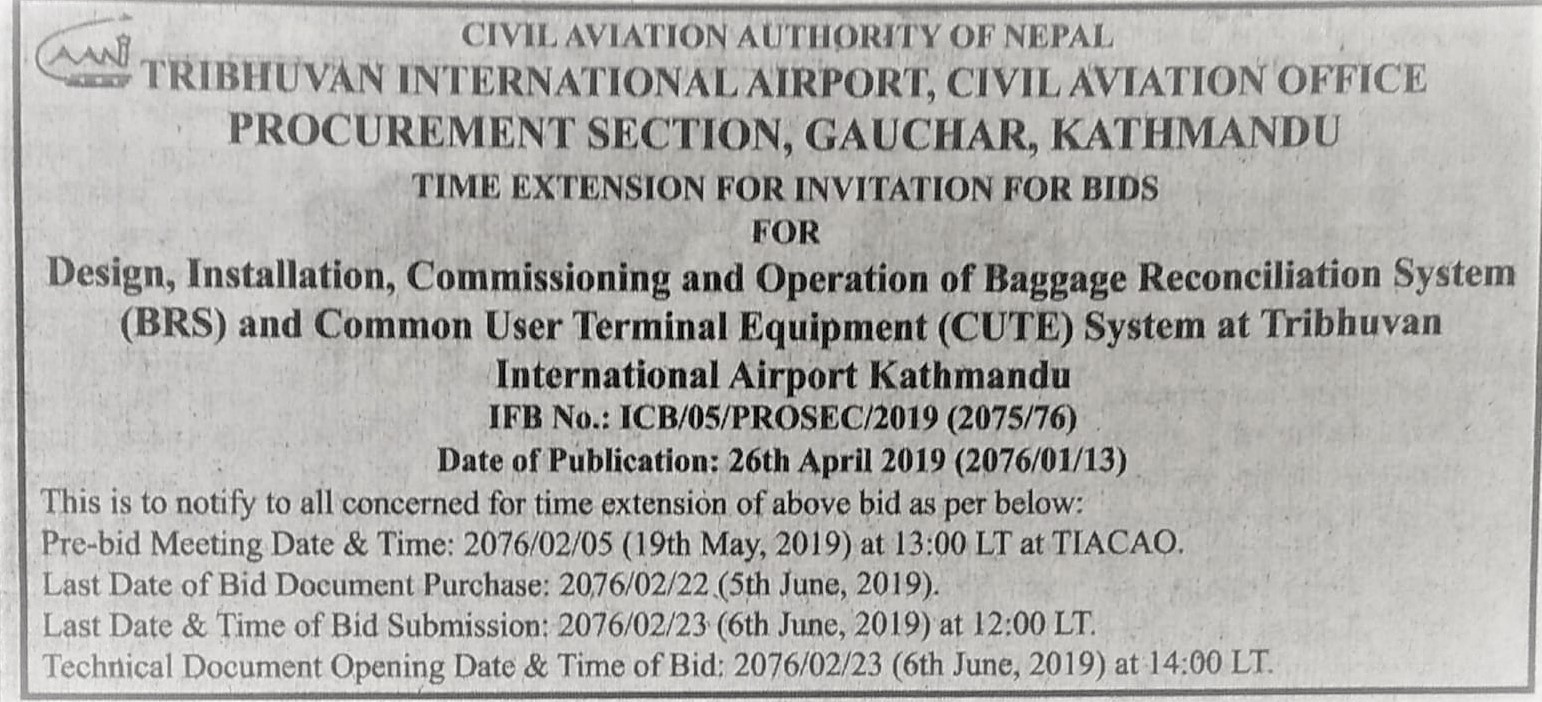Time Extension for ICB/05/PROSEC/2019(2075/76)