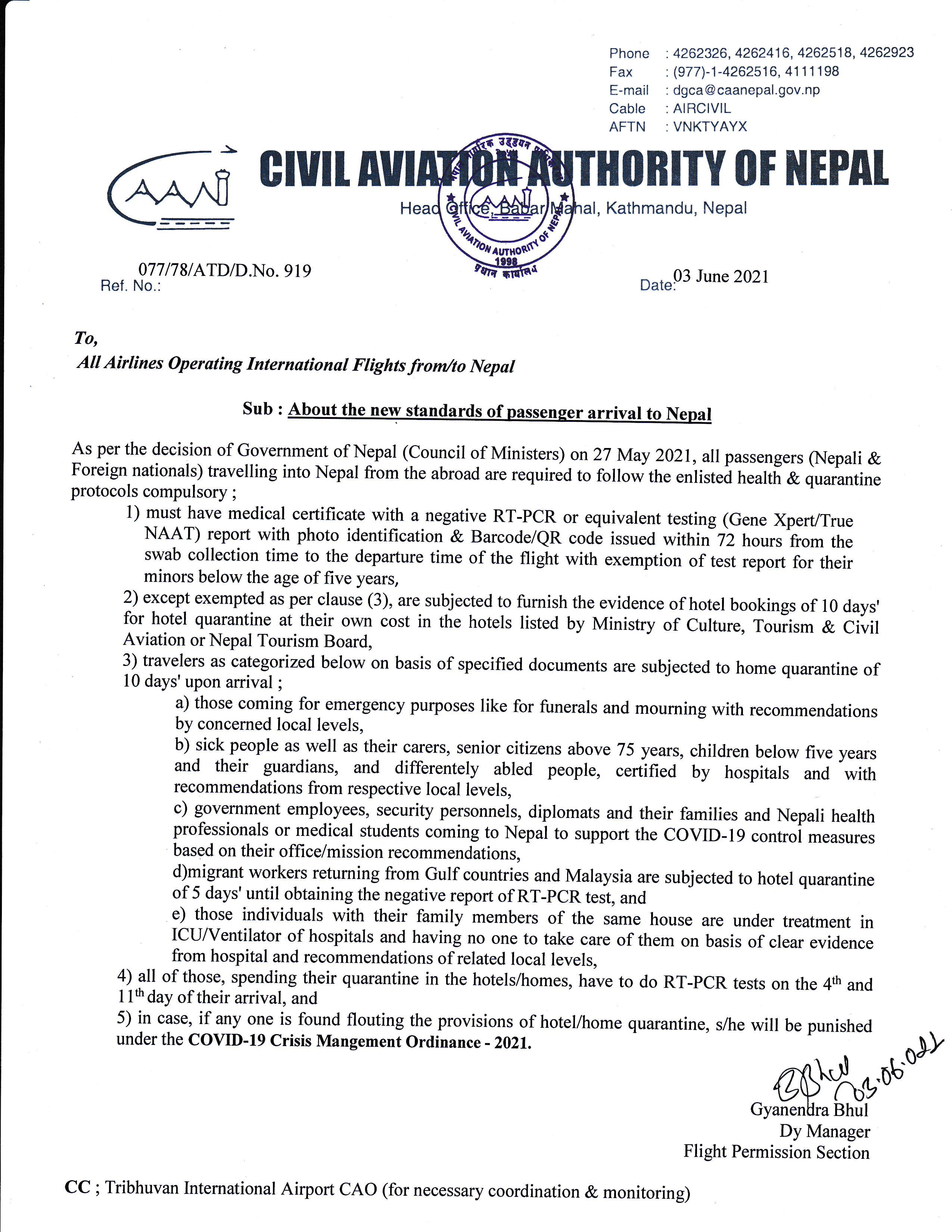 Tel: 015718030 Ext. ... Email: gyanendra.bhul@caanepal.gov.np