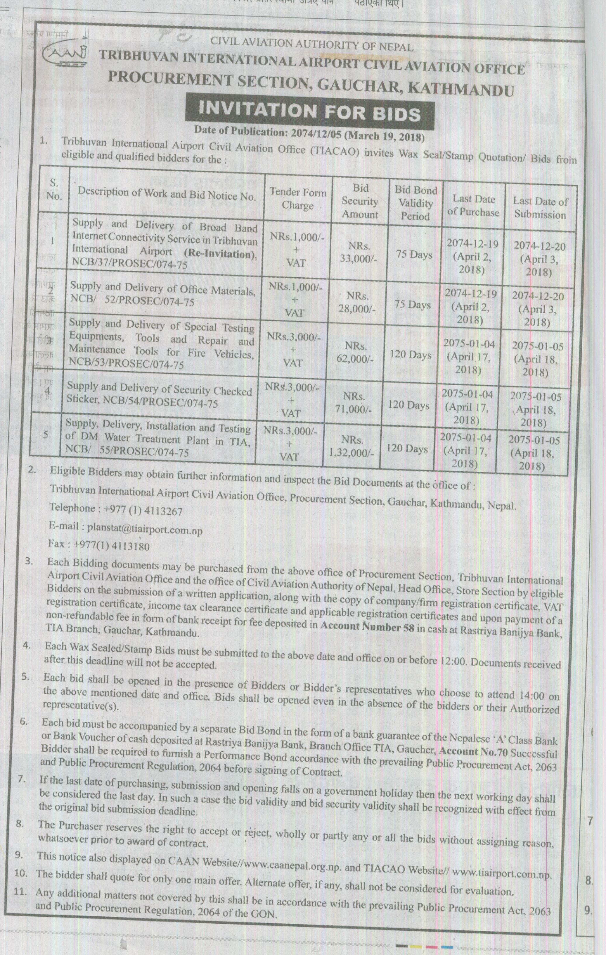 Invitation for Bids NCB/37 & 52-55/PROSEC/074-75