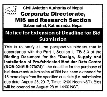Notice for Extension of Deadline for Bid Submission