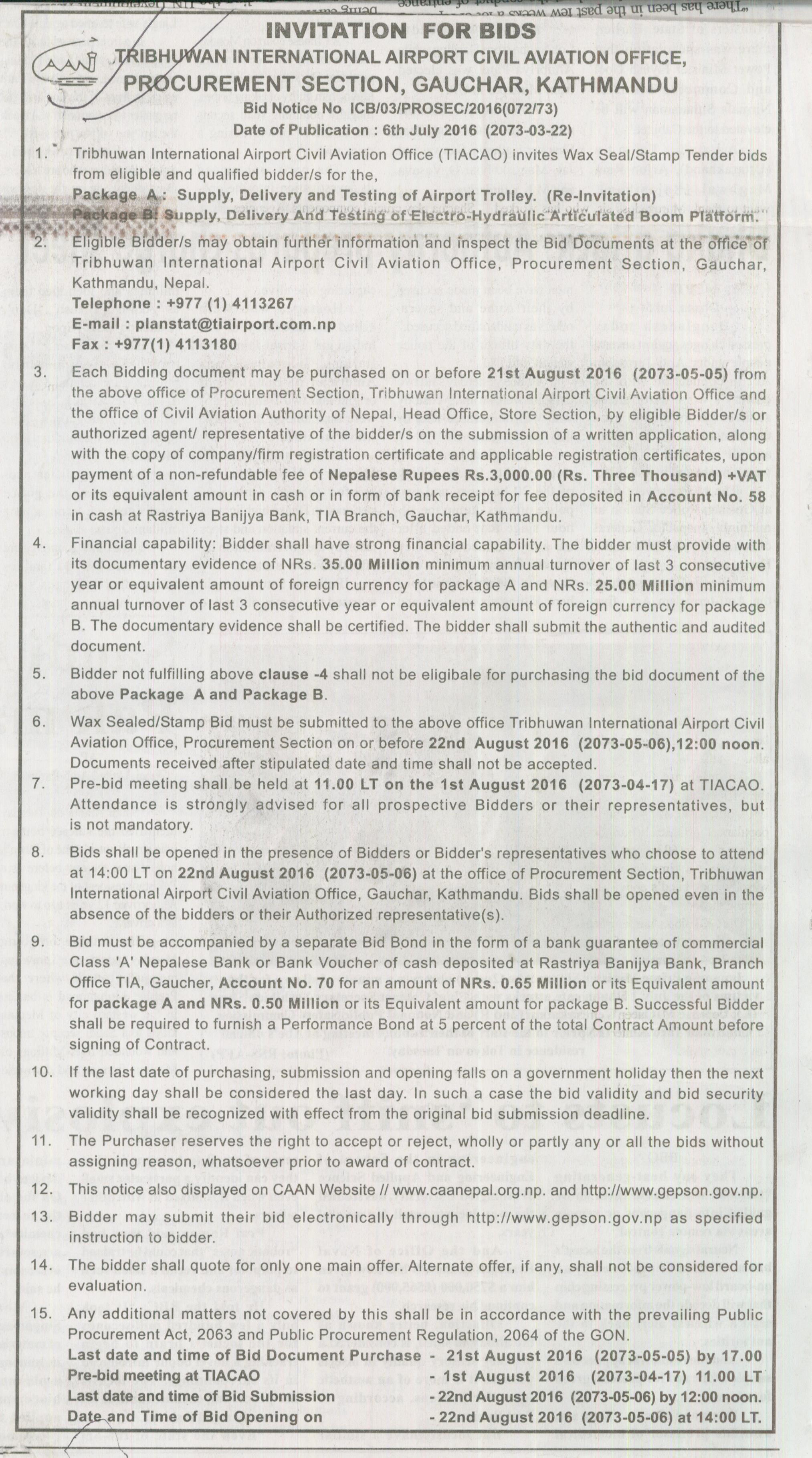 Bid Notice No ICB/03/PROSEC/2073-03-22
