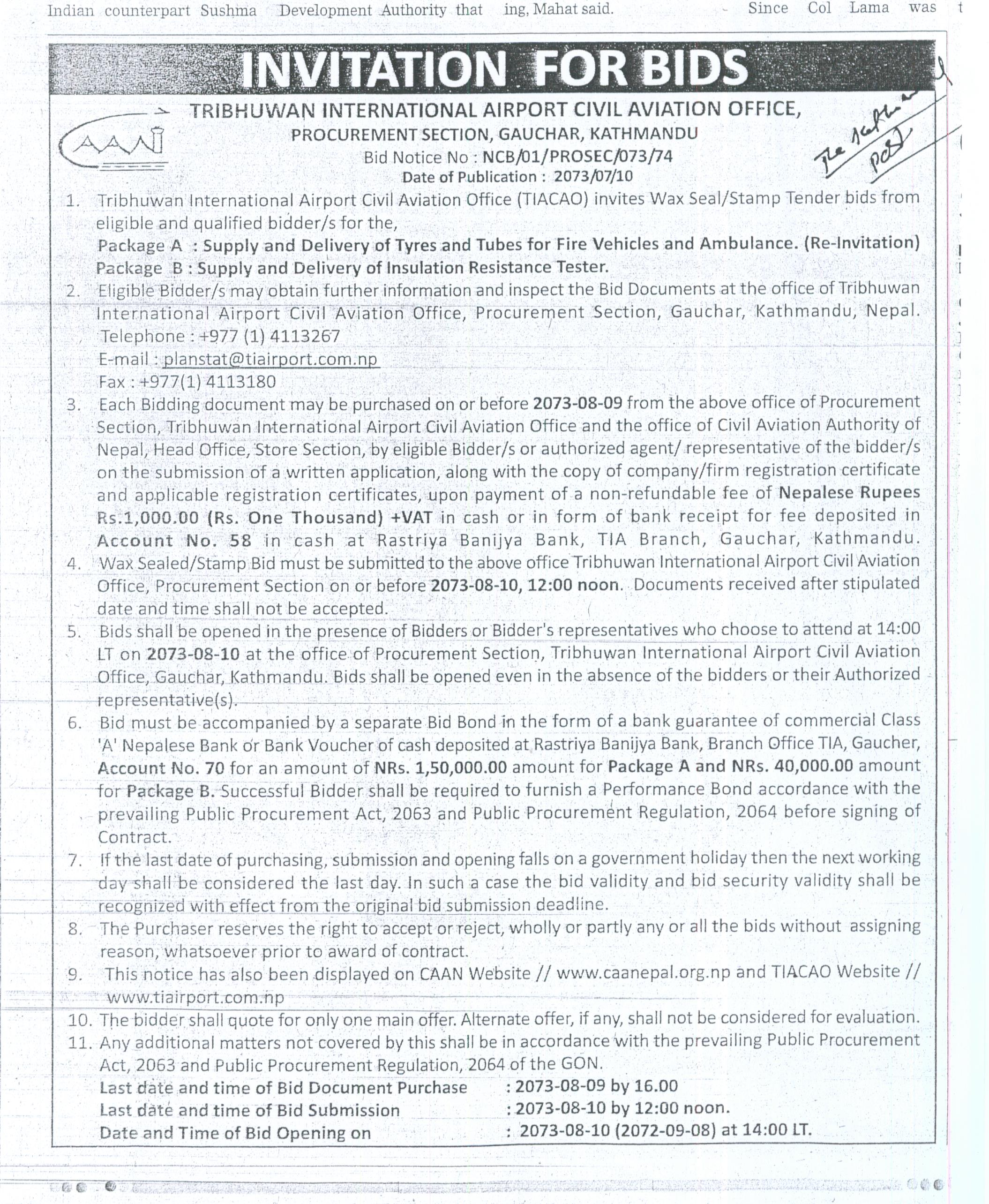 Bid Notice No: NCB/01/Prosec/073/74-2073/07/10