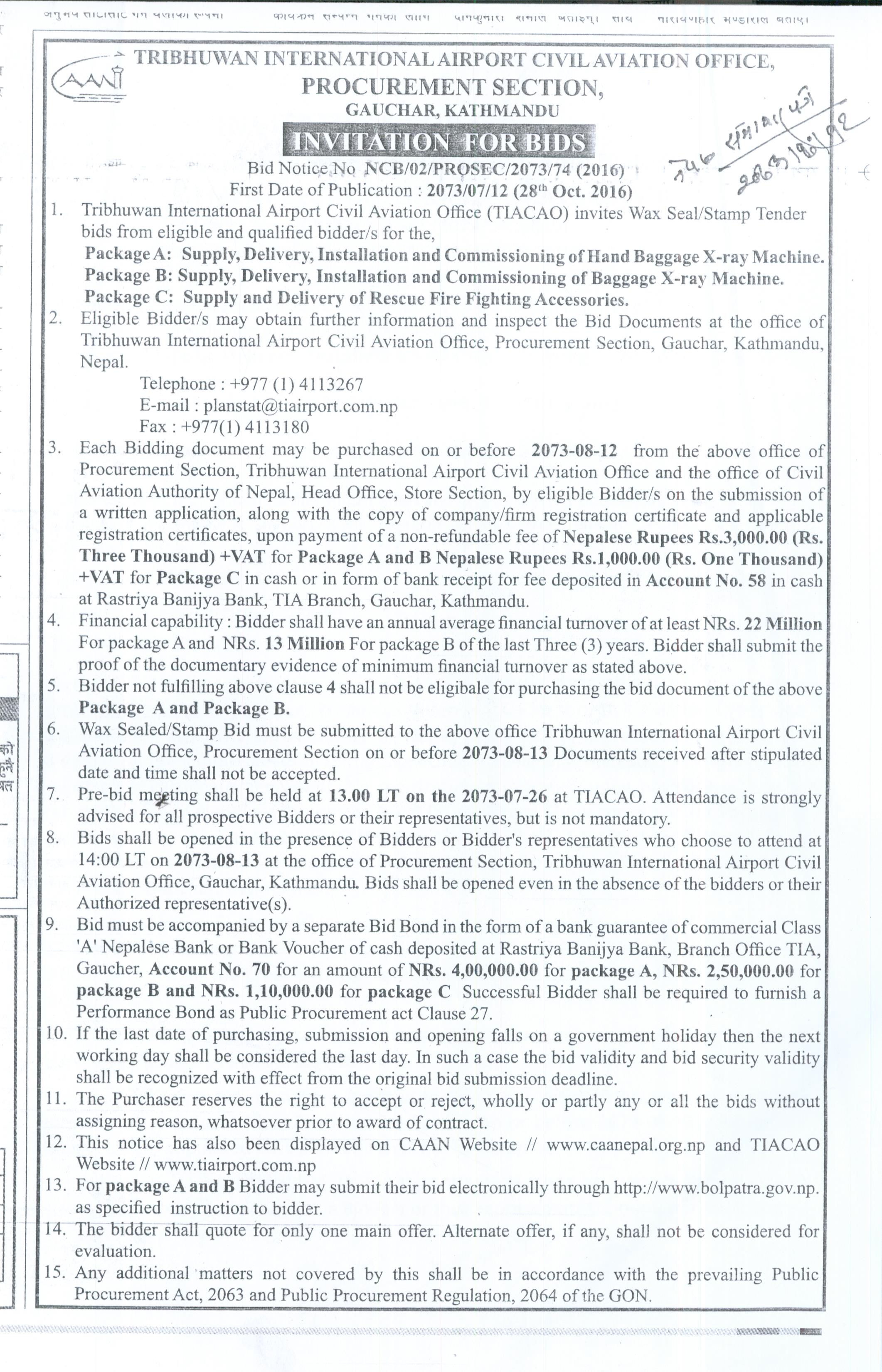 Bid Notice No: NCB/02/Prosec/073/74-2073/07/12