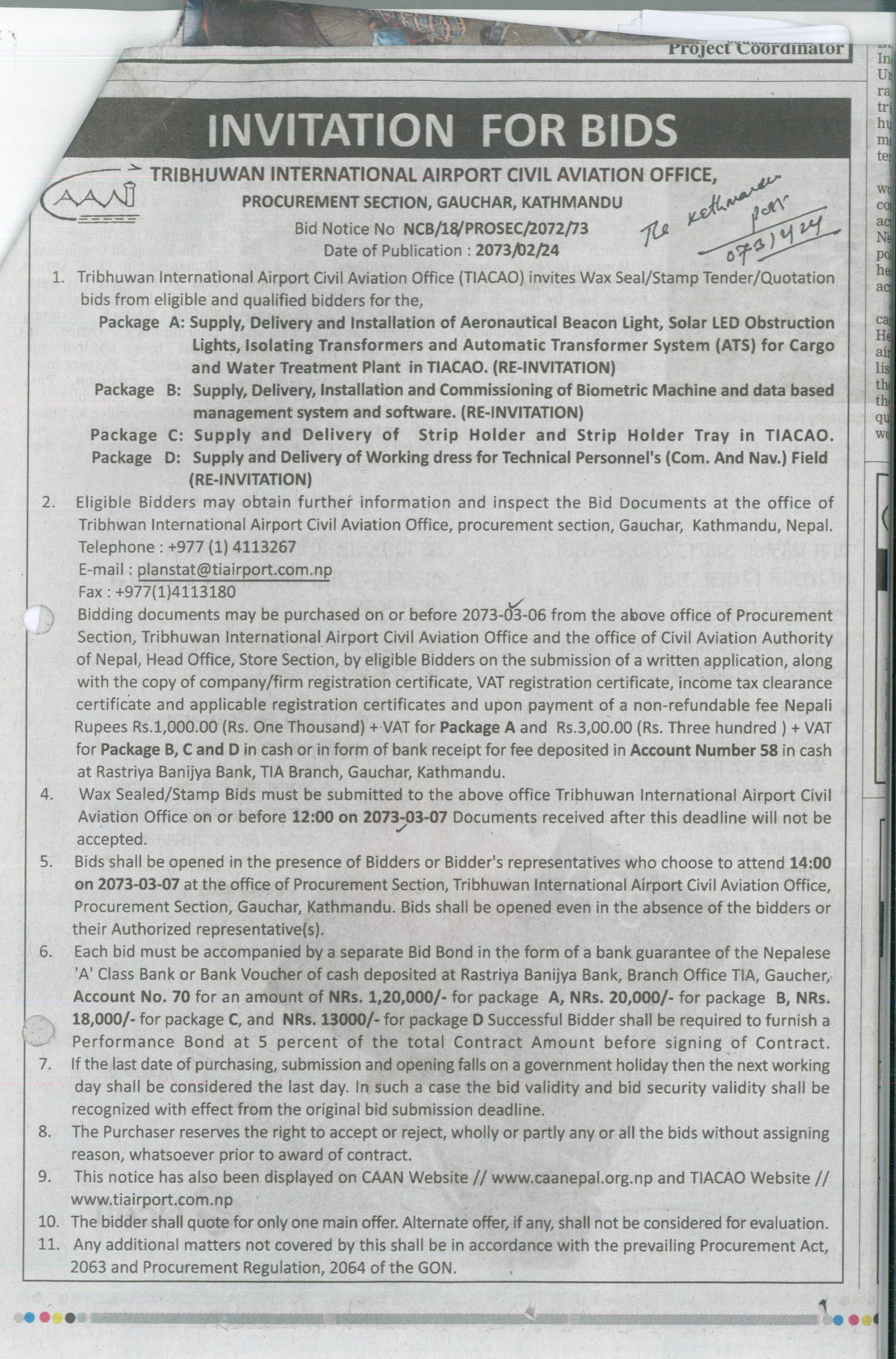 BID Notice No. NCB-13/PROSEC/2072/73- 2072.12.23-TIA