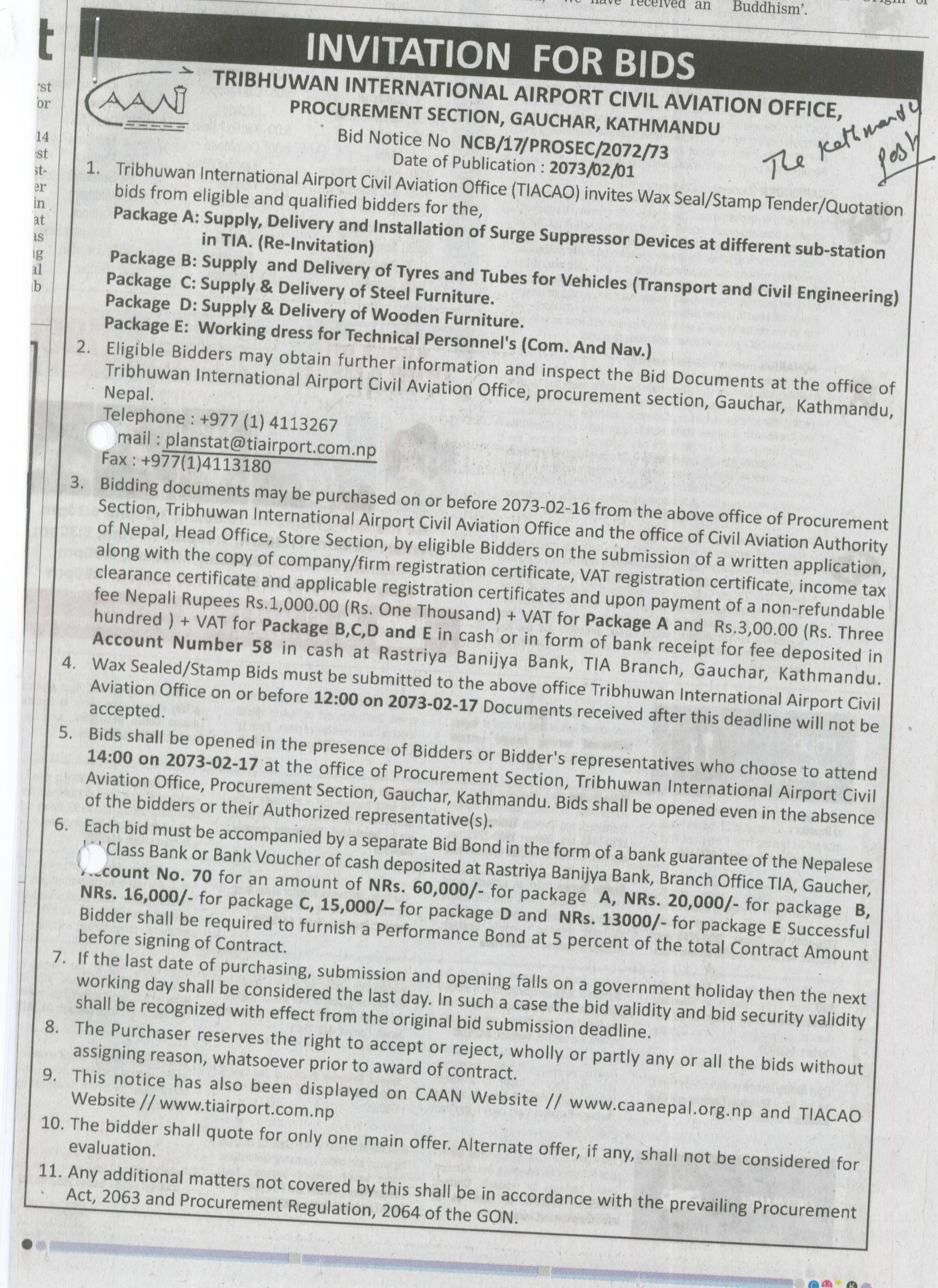 BID Notice No.NCB -17/PROSEC/2072/73 – 2073/02/01 -TIA