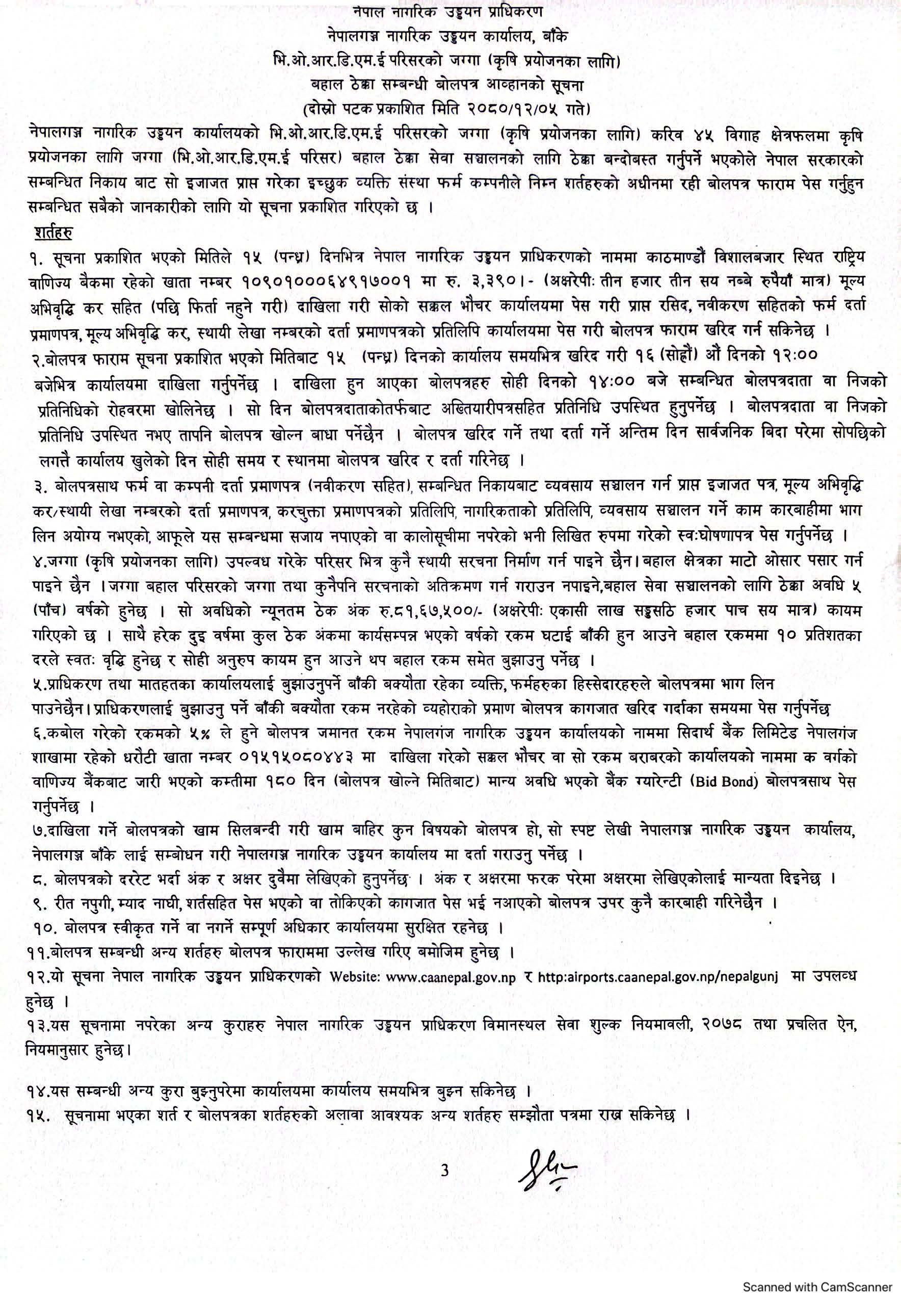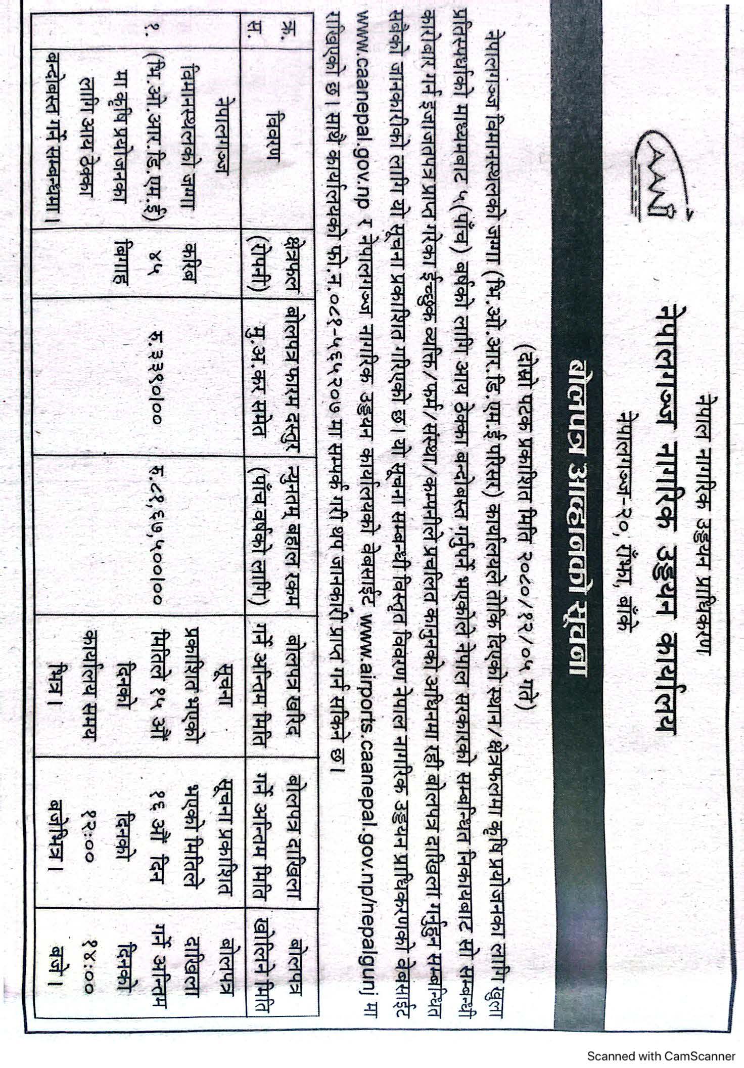 बोलपत्र आह्वानको सूचना (नेपालगंज ना.उ.का.)
