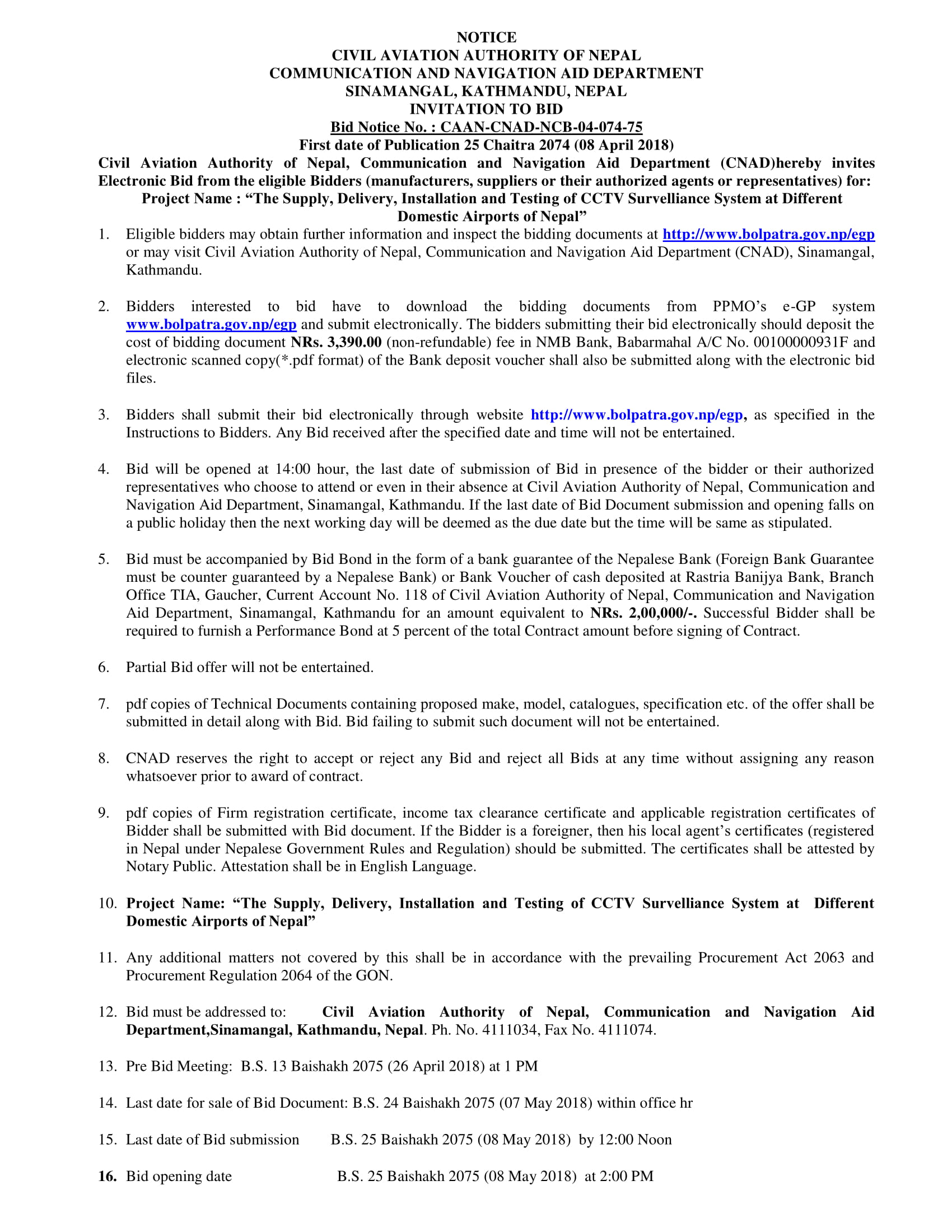 Invitation To Bid CAAN-CNAD-NCB-04-074-75