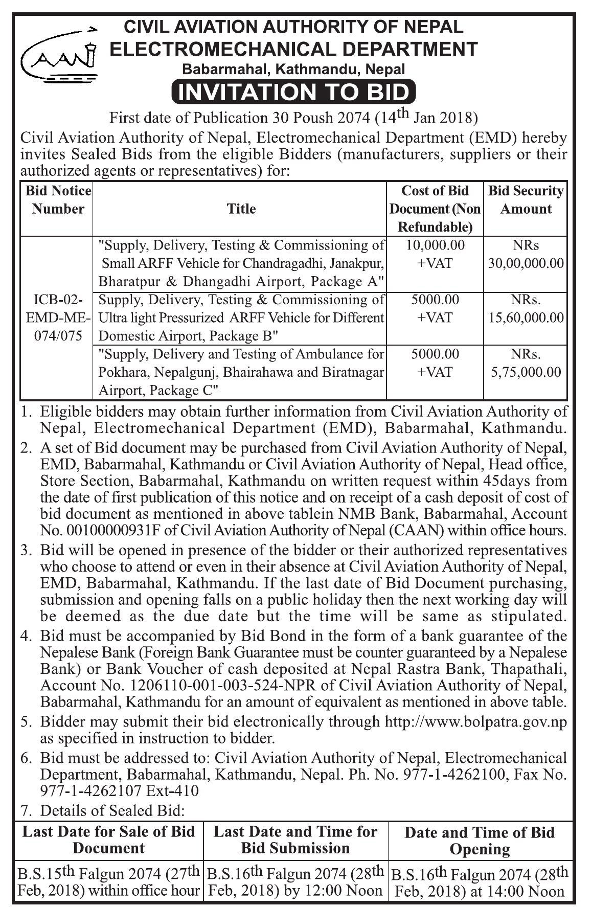 Invitation To Bid ICB-02-EMD-ME-074/75